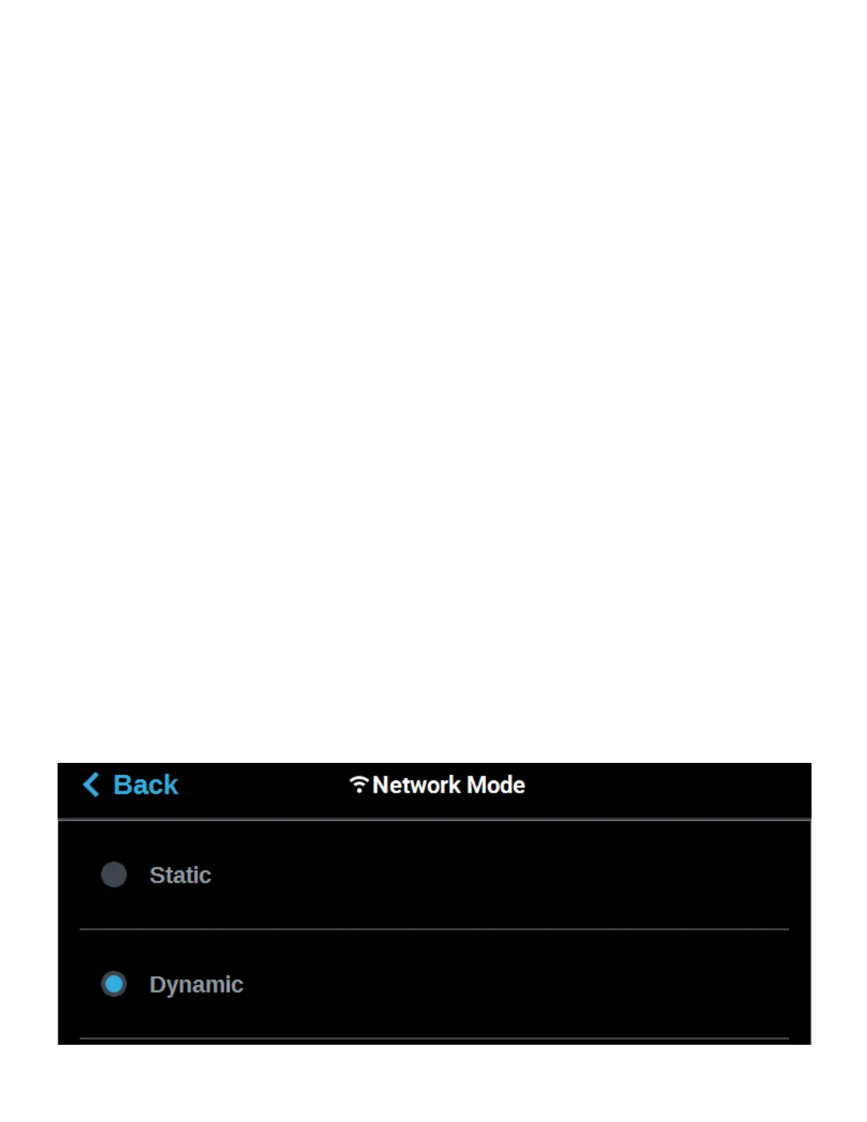 • Selecting the Wired option will allow you to select between a Dynamic or Static network mode.