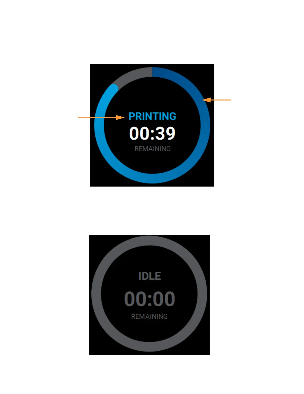 When the printer is idle, "IDLE" will be displayed within the center of the Build Status Display. This indicates that