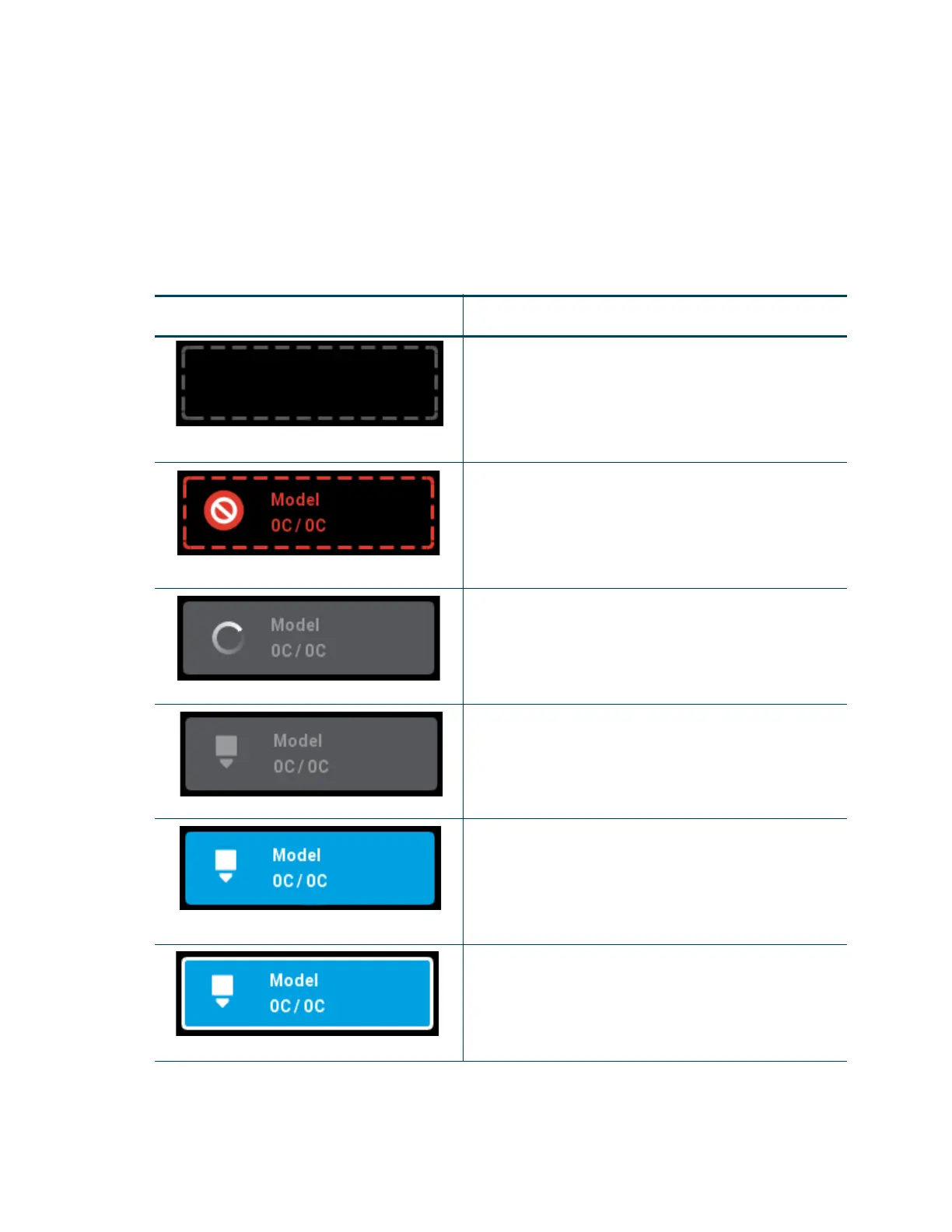 pertains to the printer’s support head while the left-most icon pertains to the printer’s model head. Touching one