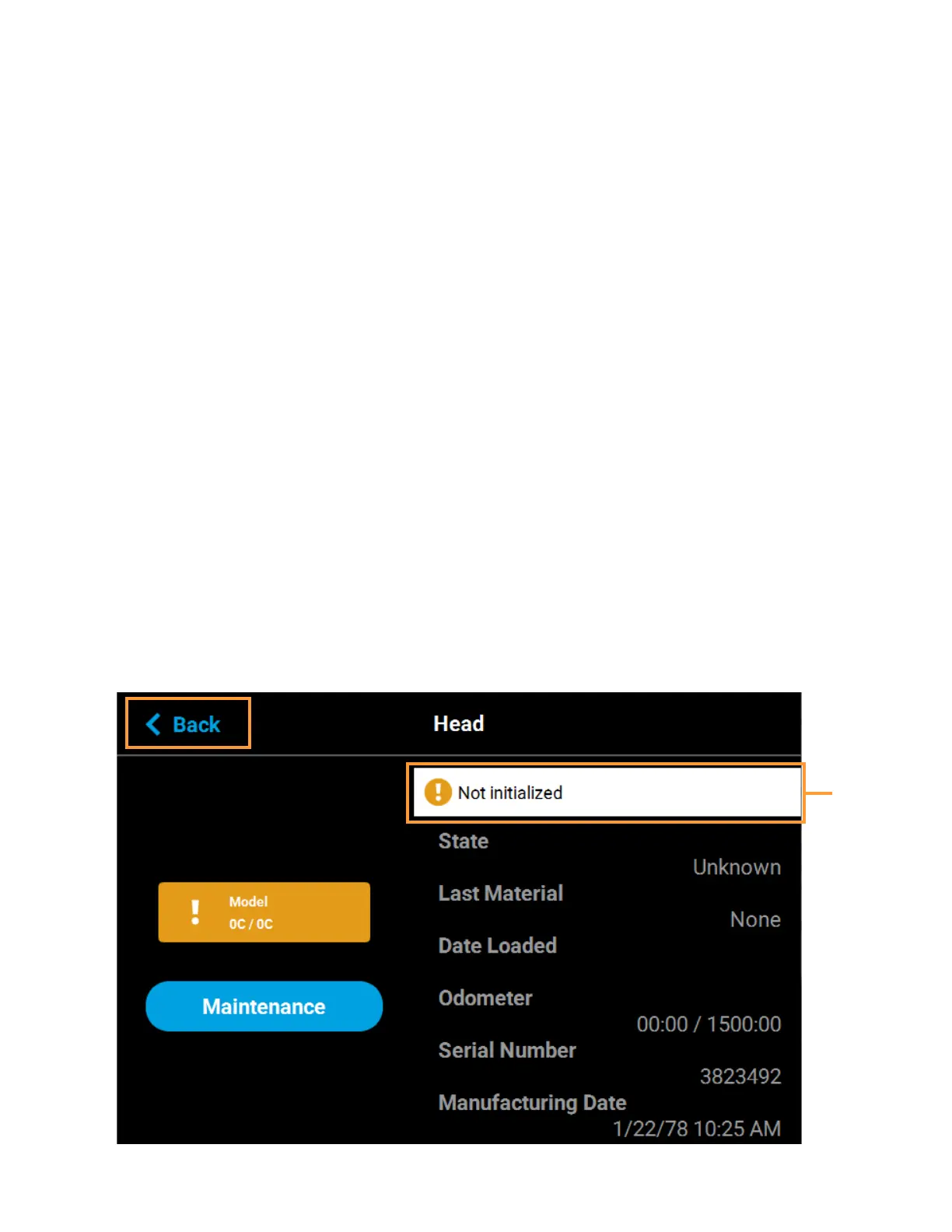 the head. The Maintenance button directly below the Head Status Icon will display a menu allowing you to