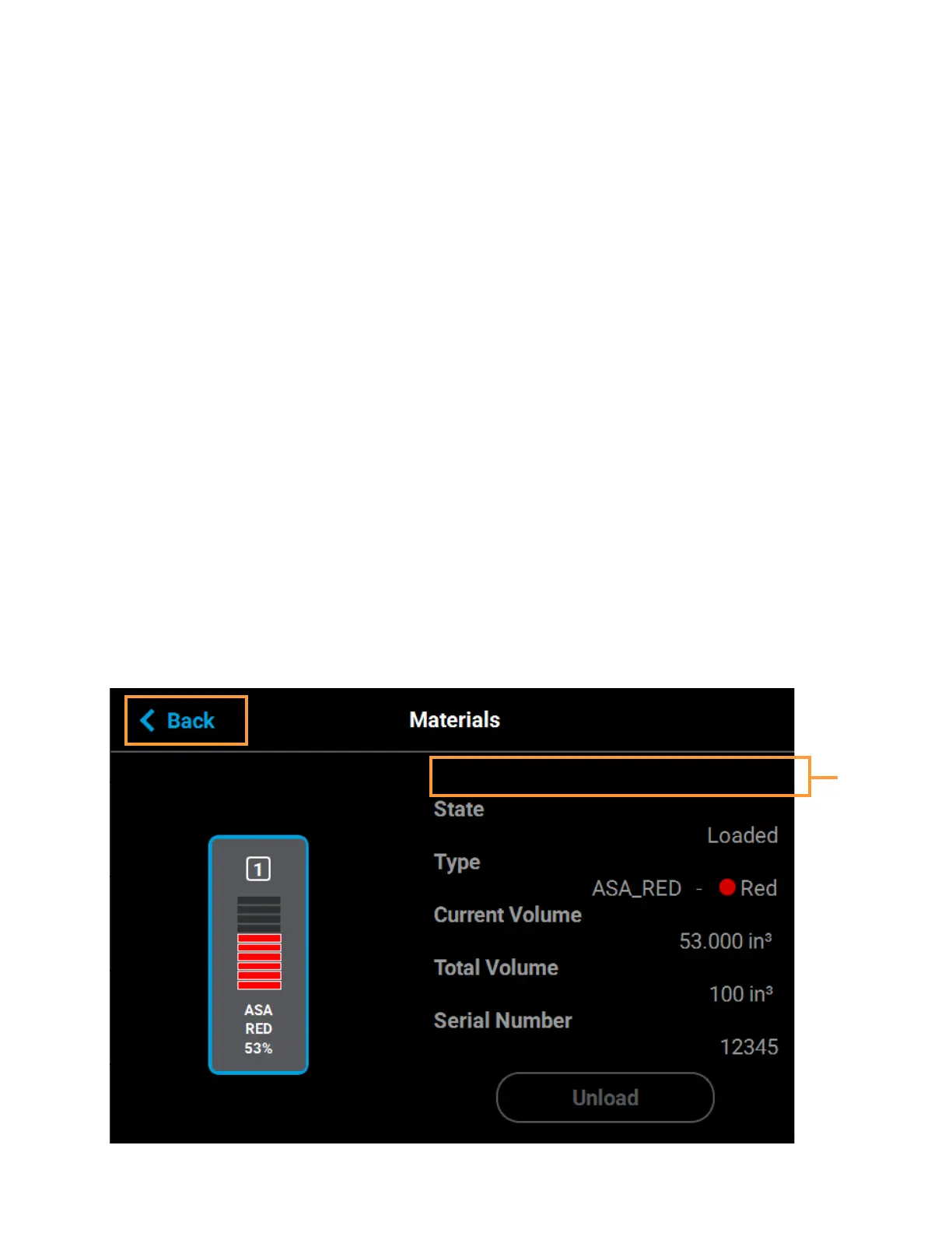 The buttons directly below this information allow you to load or unload a material spool as needed or cancel a