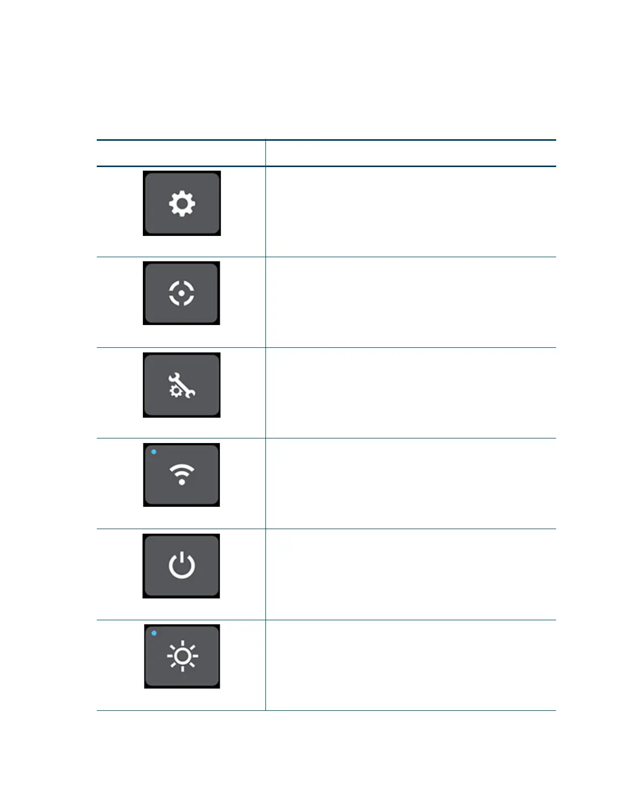 Pressing the Power button opens the Power page. From this page you