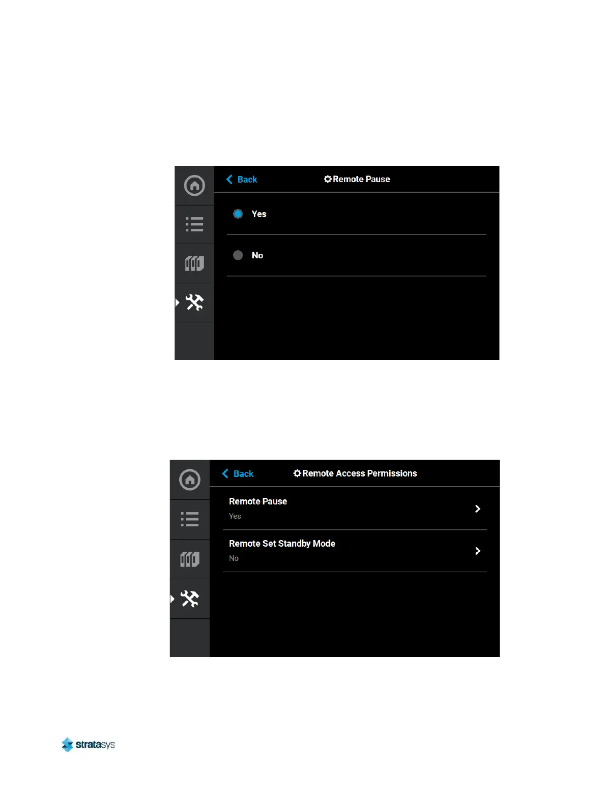 Setting the Remote Pause radio button to Yes allows for pausing the build via the GrabCAD