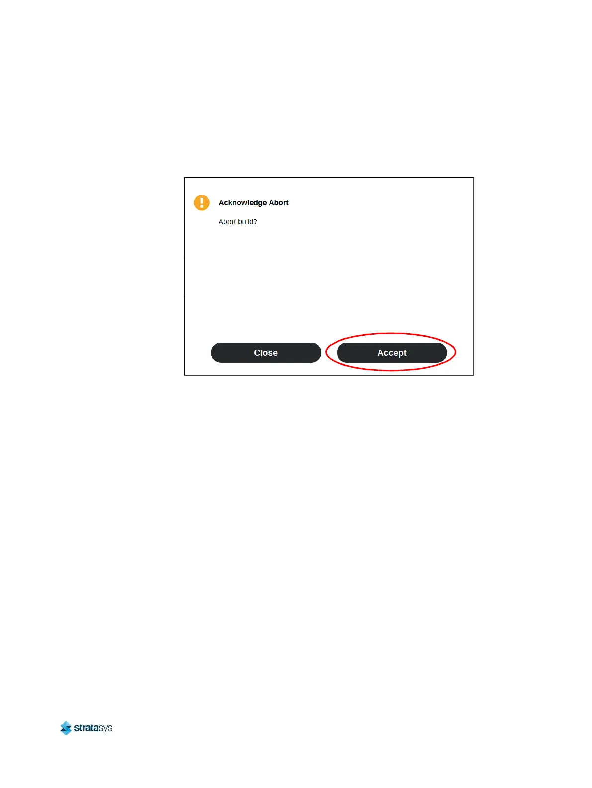 2. A dialog will be displayed allowing you to confirm or cancel the abort; press the Accept