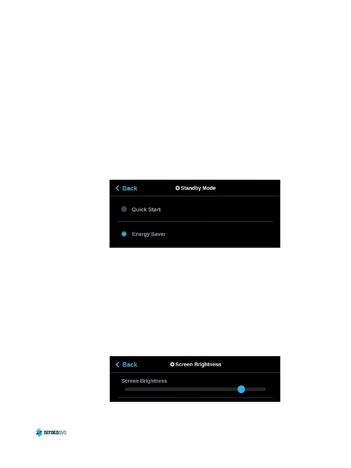 Brightness page the configured brightness will be displayed as a percentage within the Screen