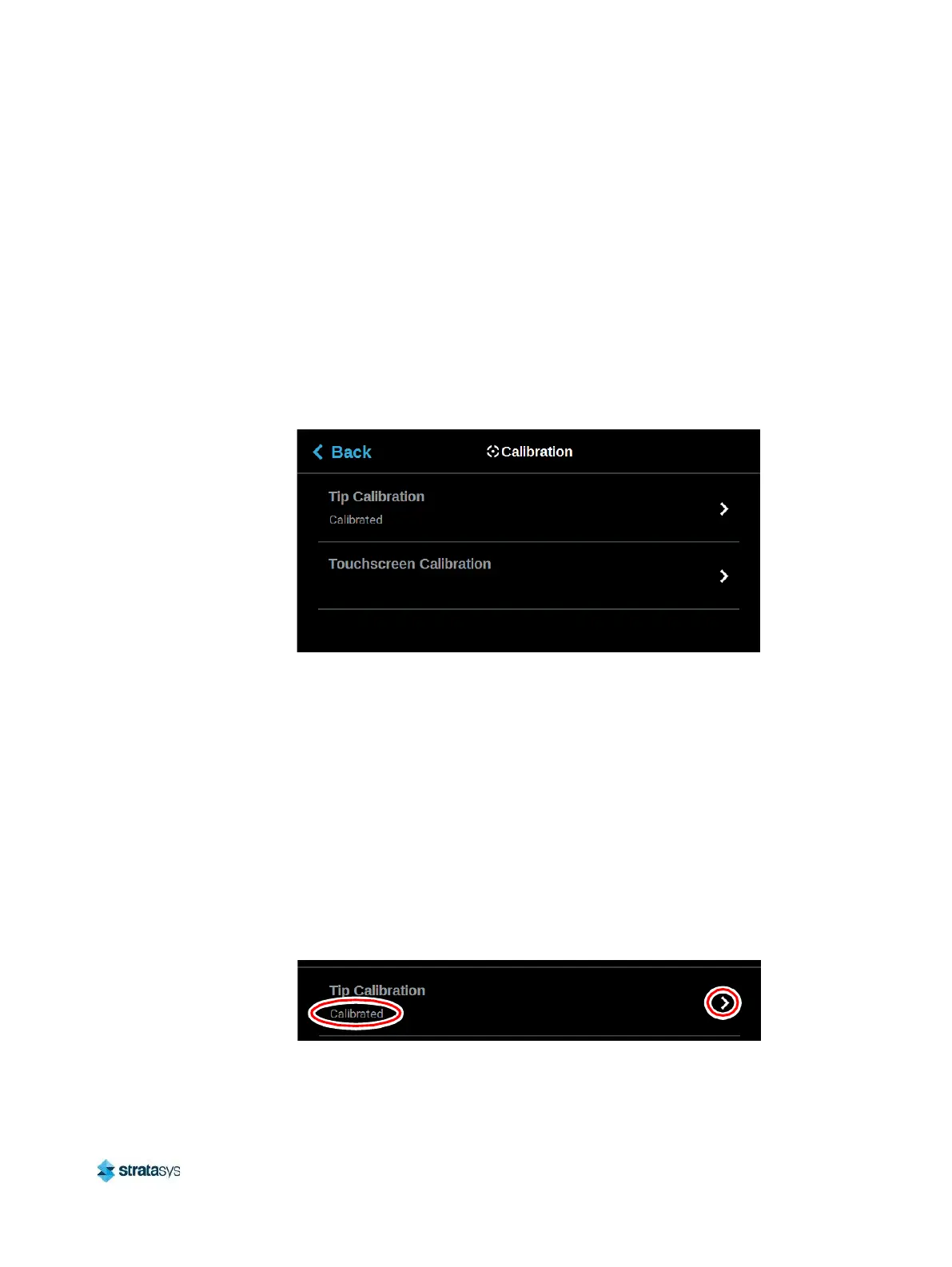 The printer’s calibration status will be displayed within the Tip Calibration row. Calibrated or