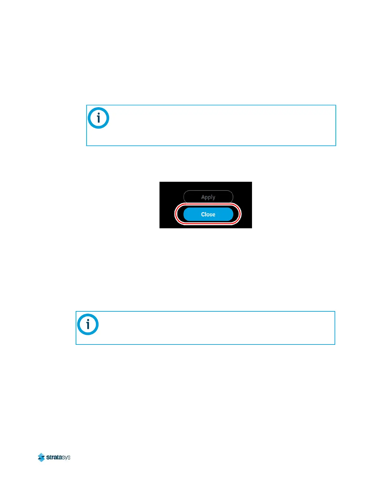 • After pressing the Apply button, the Close button will appear. Press the Close