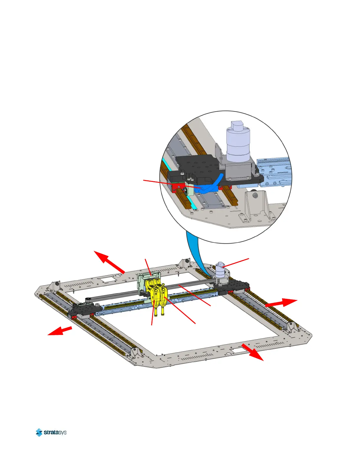 The gantry moves the head in the X and Y directions when building a part. The gantry