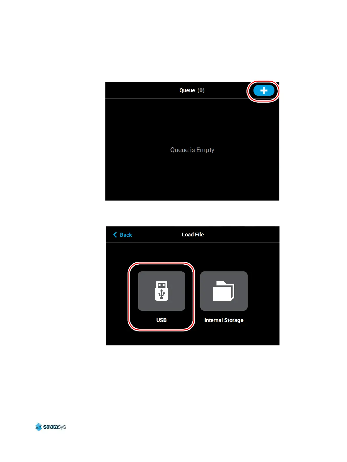 4. The Load File page will be displayed; press the USB button within this page.