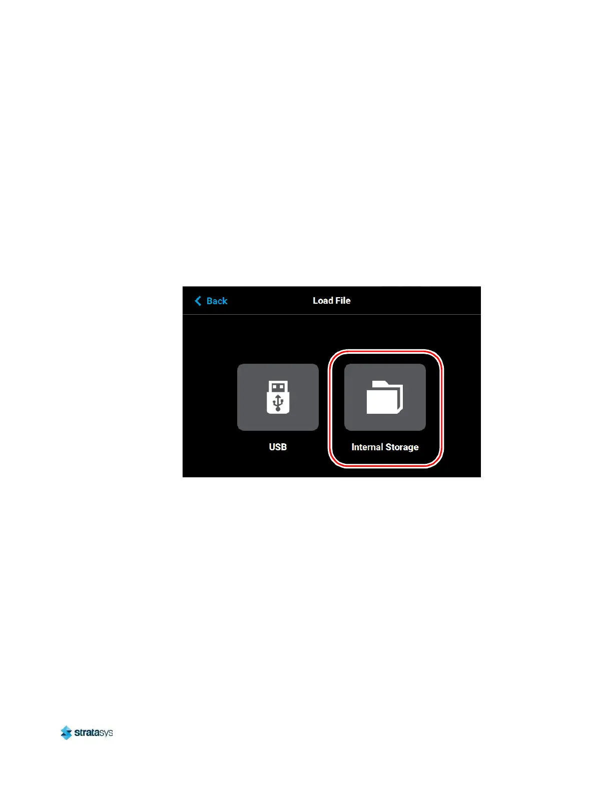 3. The Load File page will be displayed; press the Internal Storage button within this page.