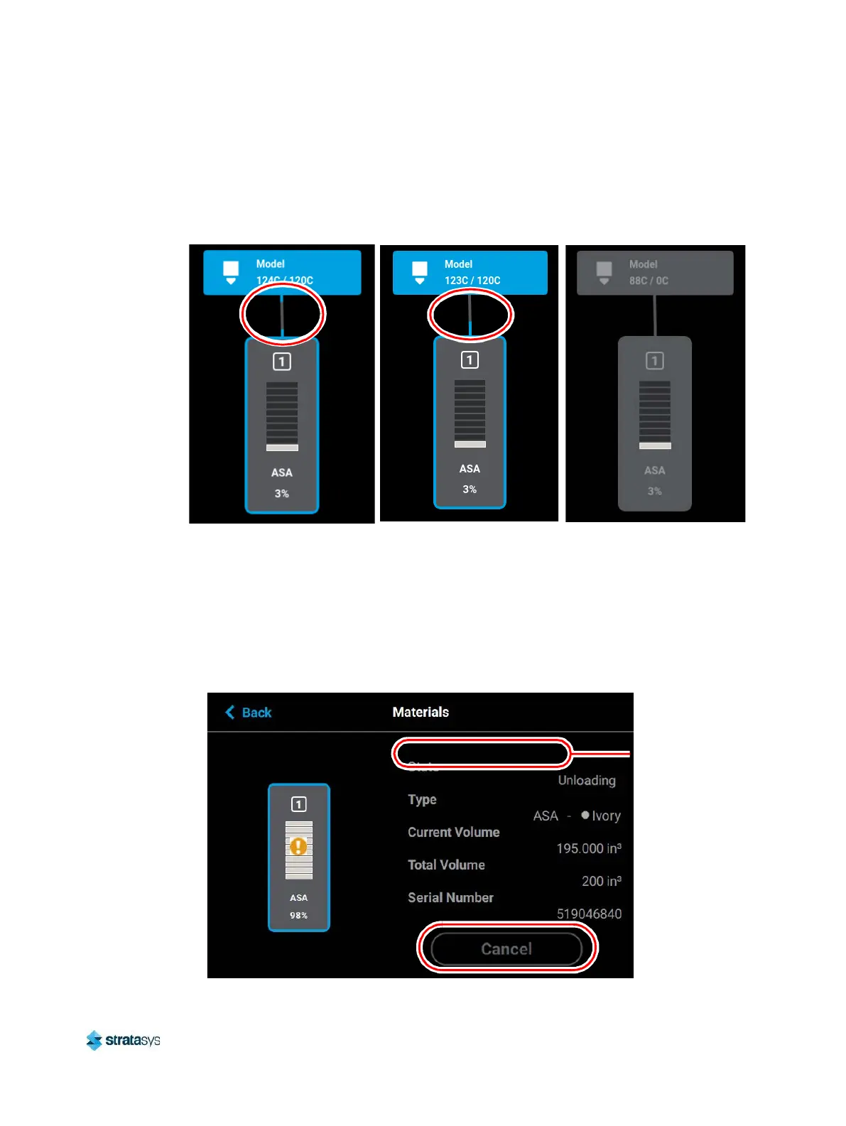 the process of being loaded/unloaded. This button allows you to cancel a material load or