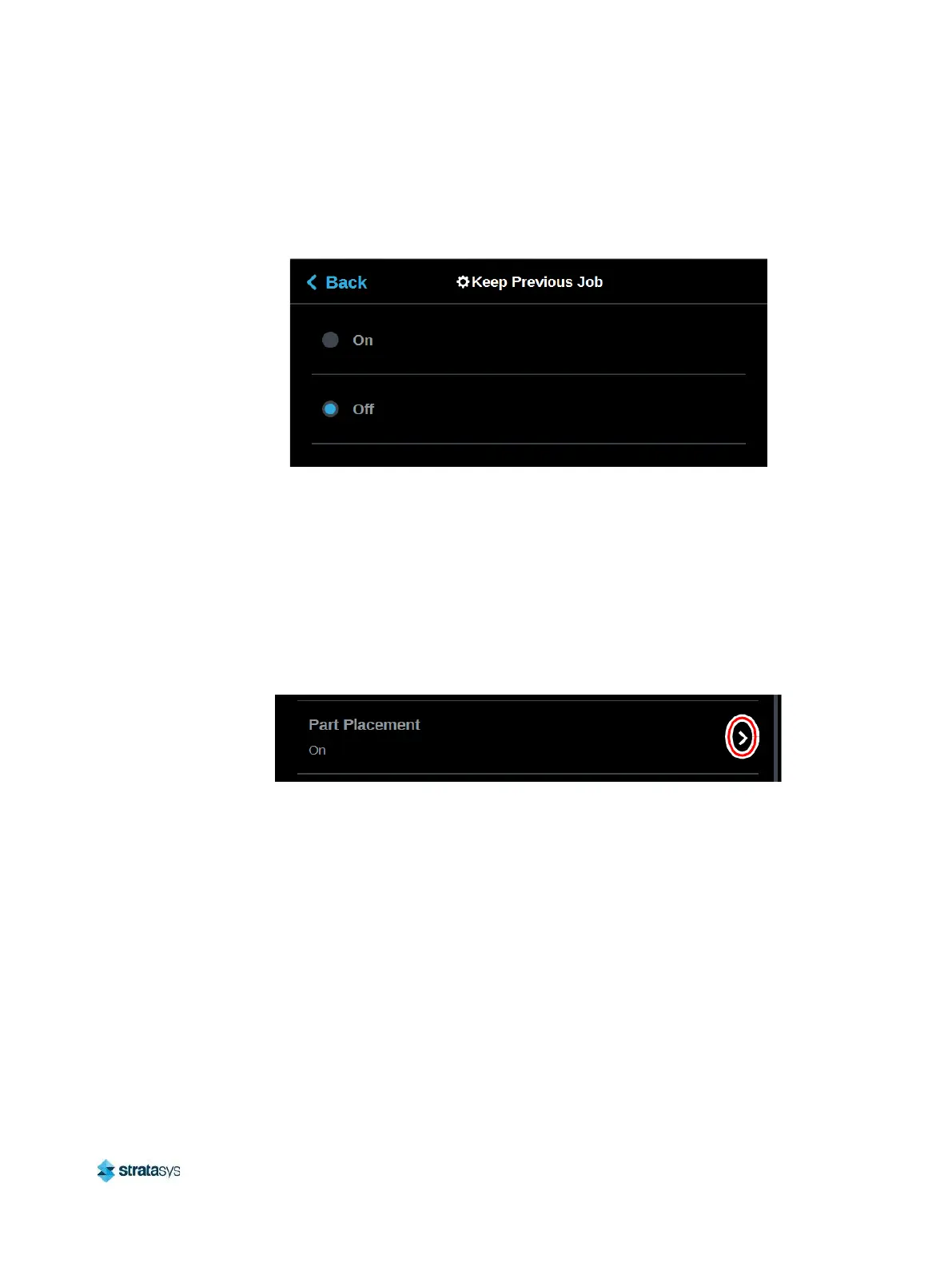 To configure this setting, press anywhere within the row; the Keep Previous Job page will be