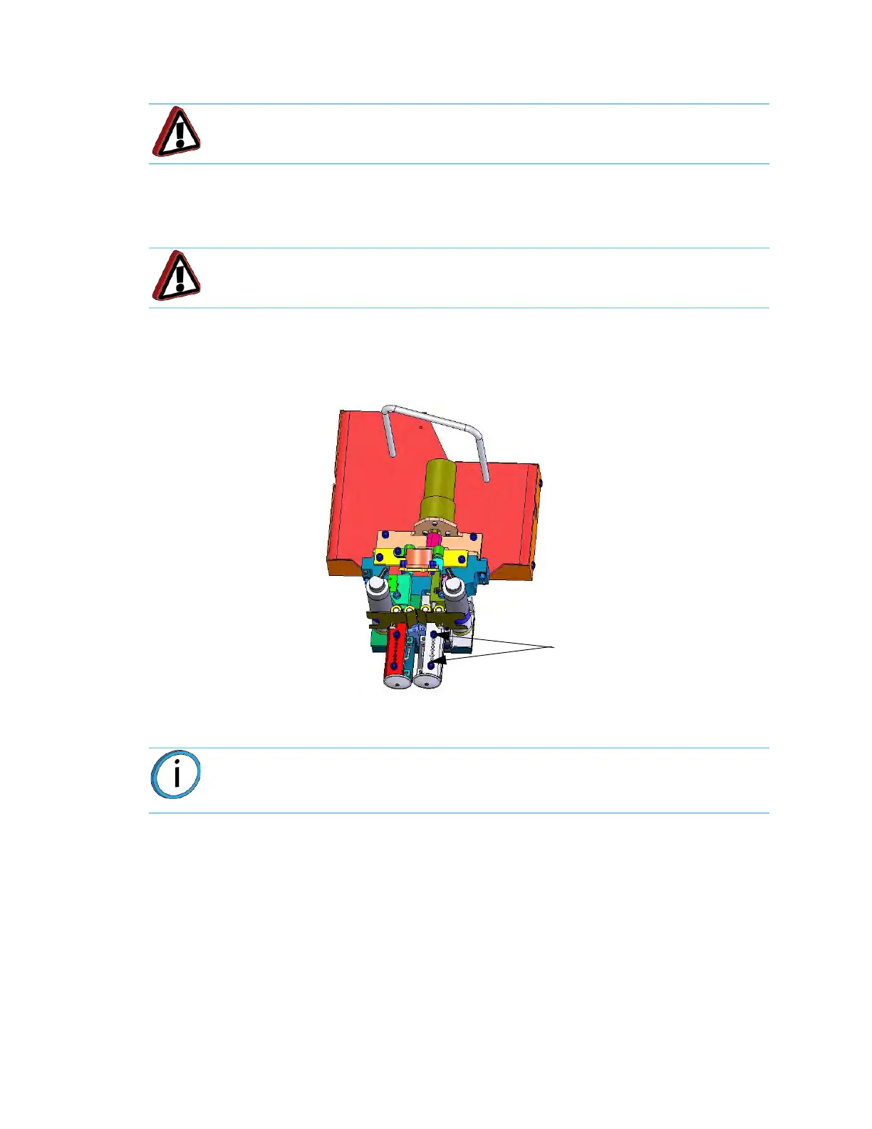Warning: Surfaces of the liquefier tips and heater block can be very hot.