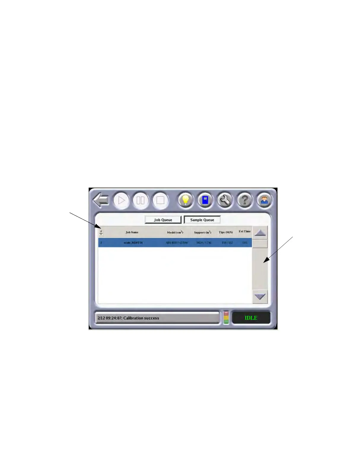 the Job Queue and Sample Queue buttons within the Operator Touchscreen to toggle between
