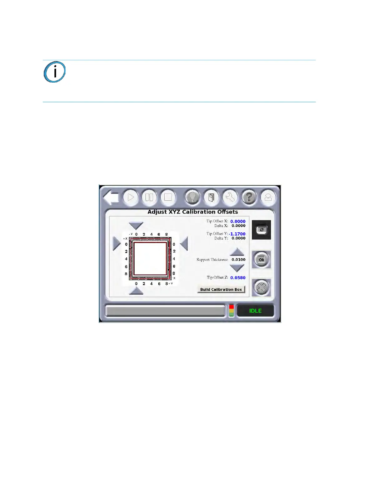 Start Auto Tip Calibration allows the user to calibrate the tip-to-tip offsets in the Z direction. No operator