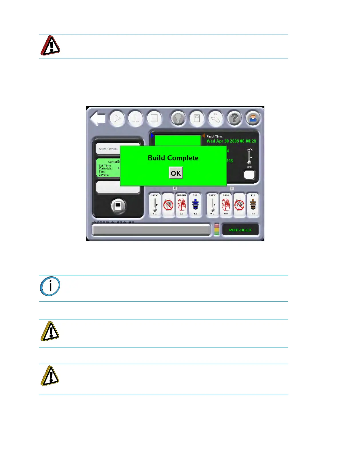 The touchscreen will displays the following Build Complete message