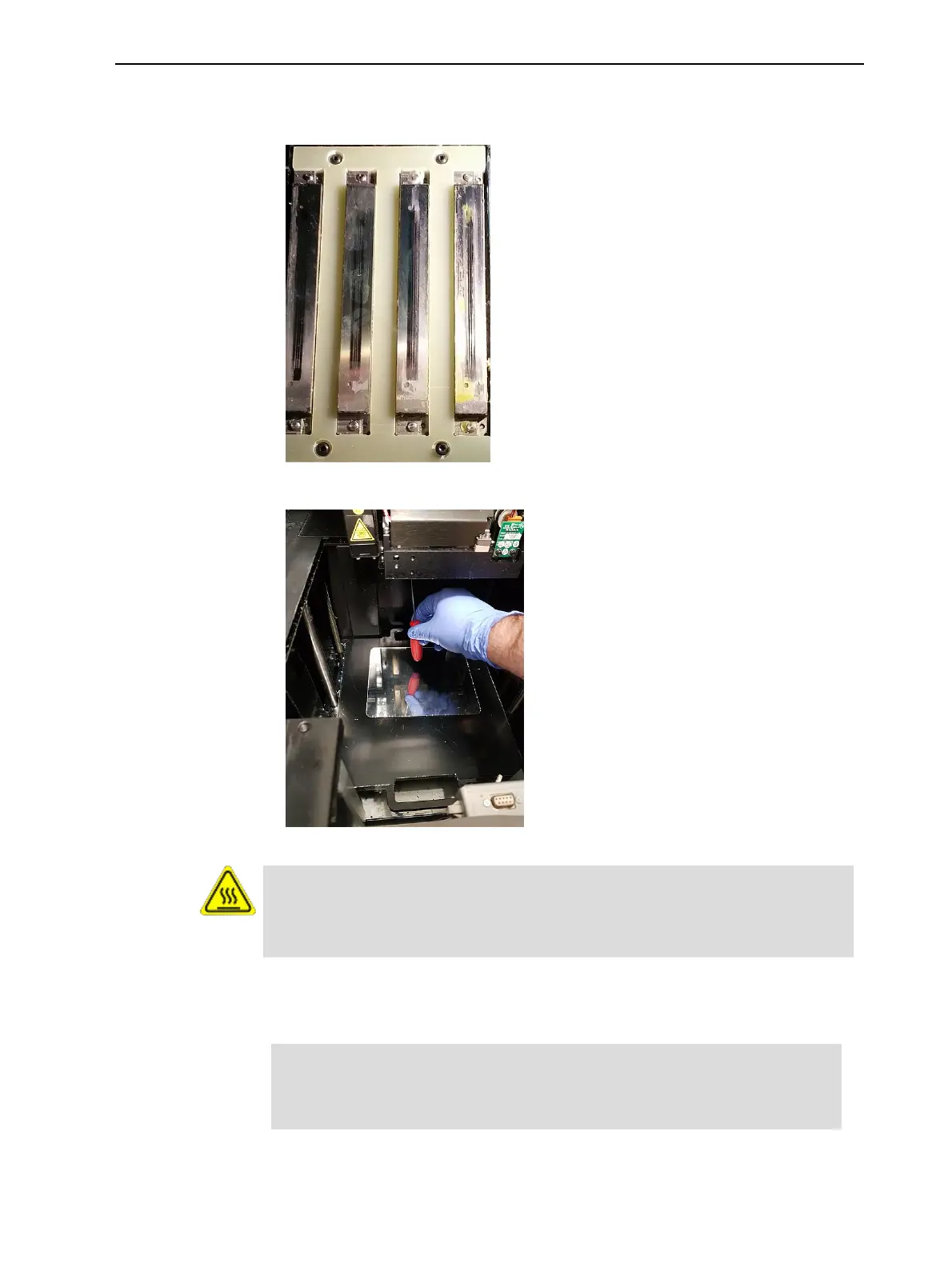The print head orifice plates (bottom surface) may be hot. Do not touch