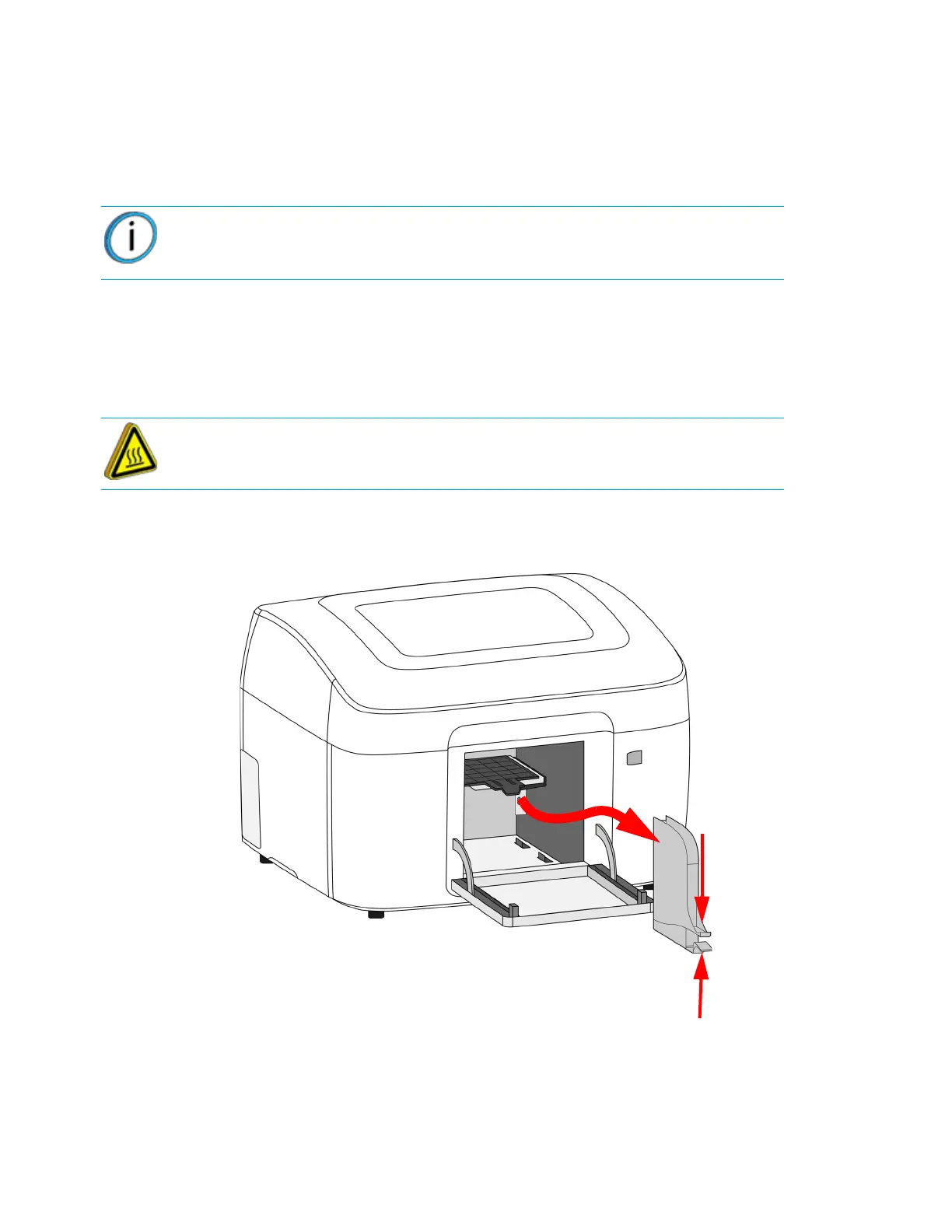 1. Squeeze the upper and lower tabs and then lift and pull the purge bucket out of the chamber.