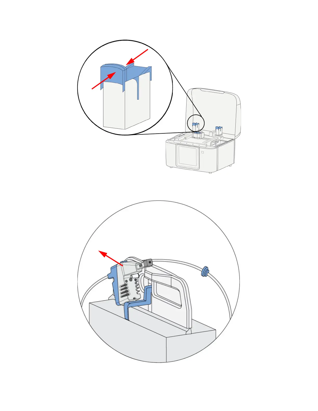 9. Open the appropriate material sensor lid by squeezing the tabs together and lifting up.
