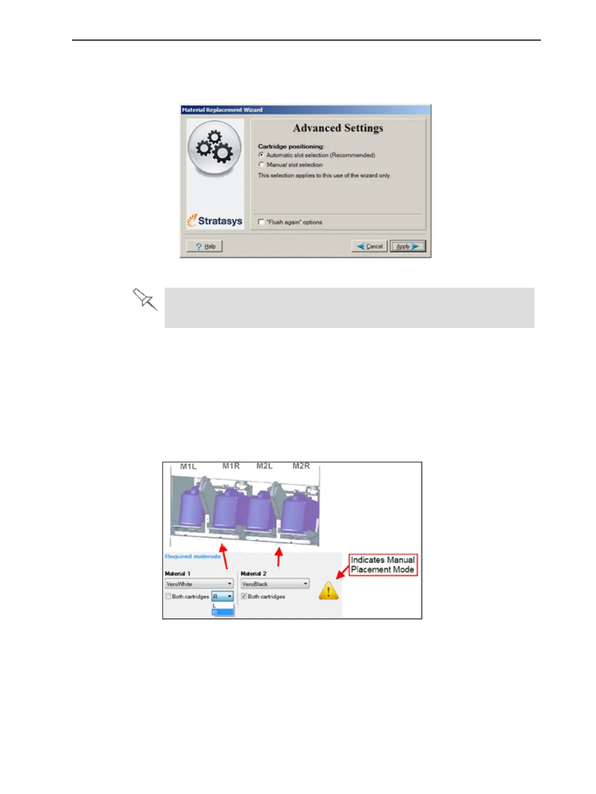loadmaterialcontainersincertaindocksintheprinter,selectManualslot