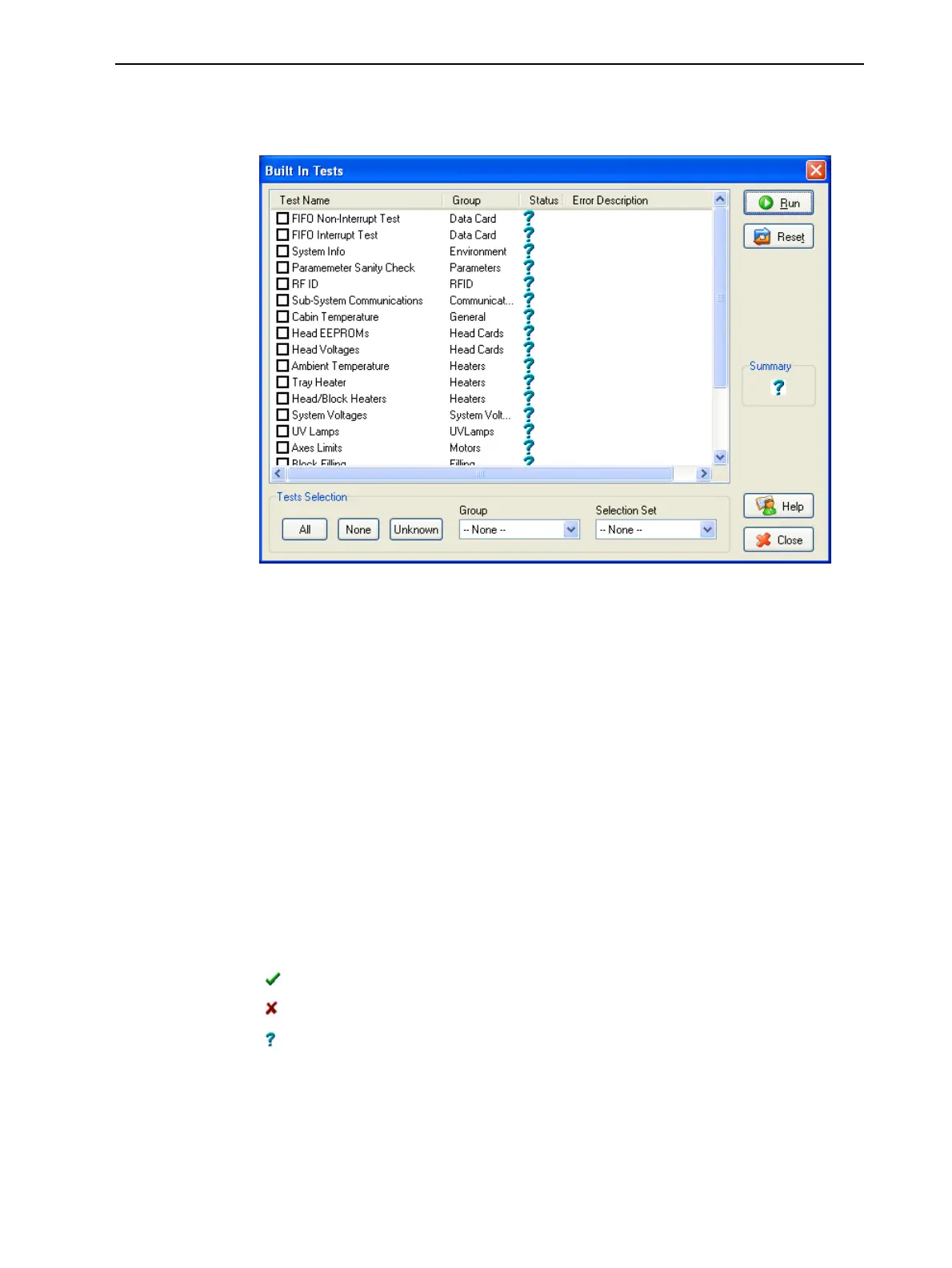 Figure6-115Built In Testsscreen