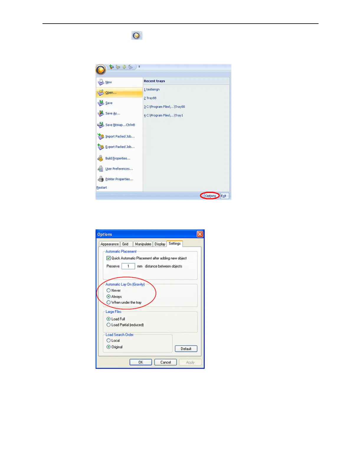 The OptionsbuttonopensadialogboxforcustomizingObjetStudio.