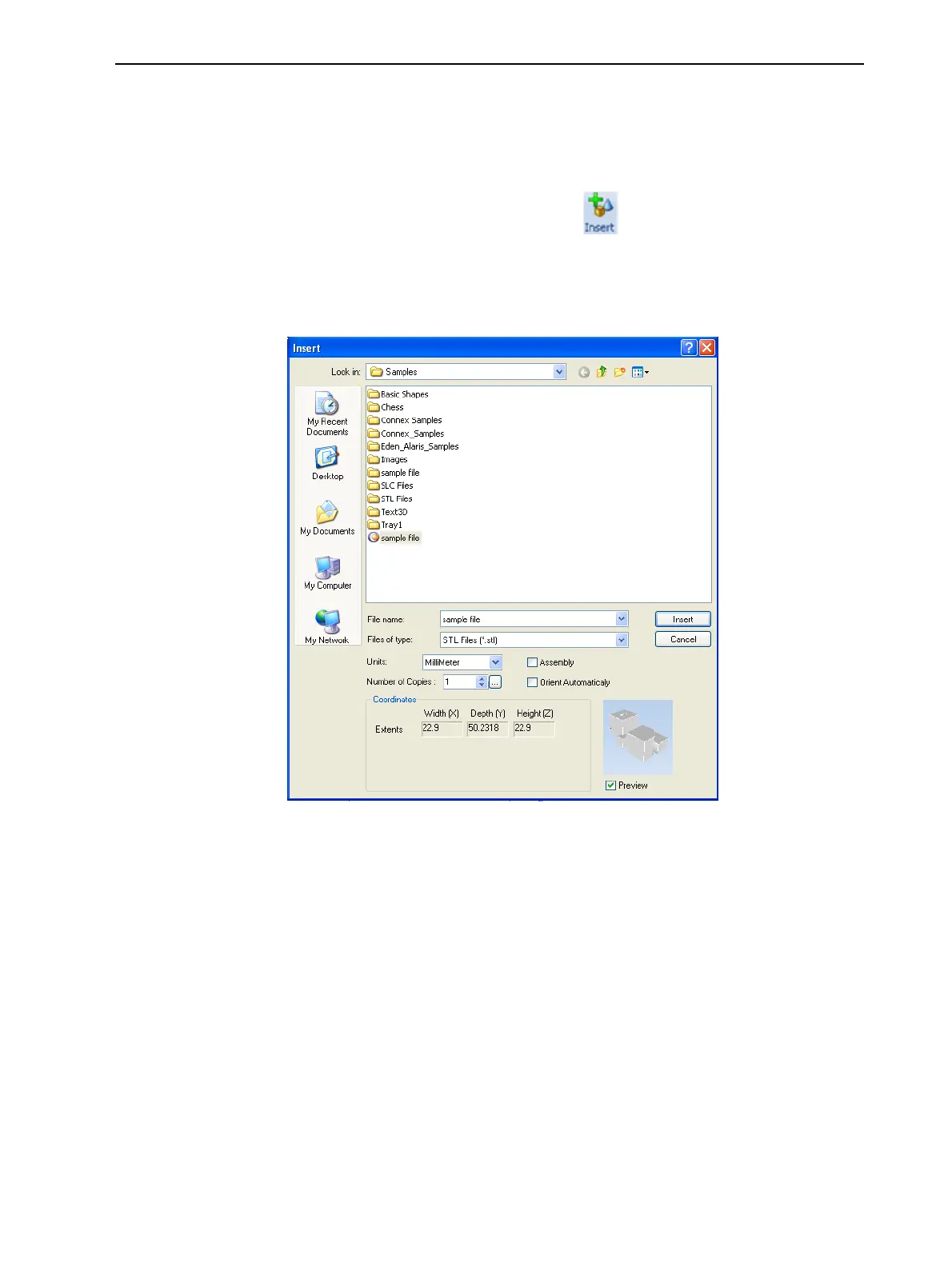 Note: WhenselectingaVRML(wrl)file,theobjectisdisplayedinthedialog