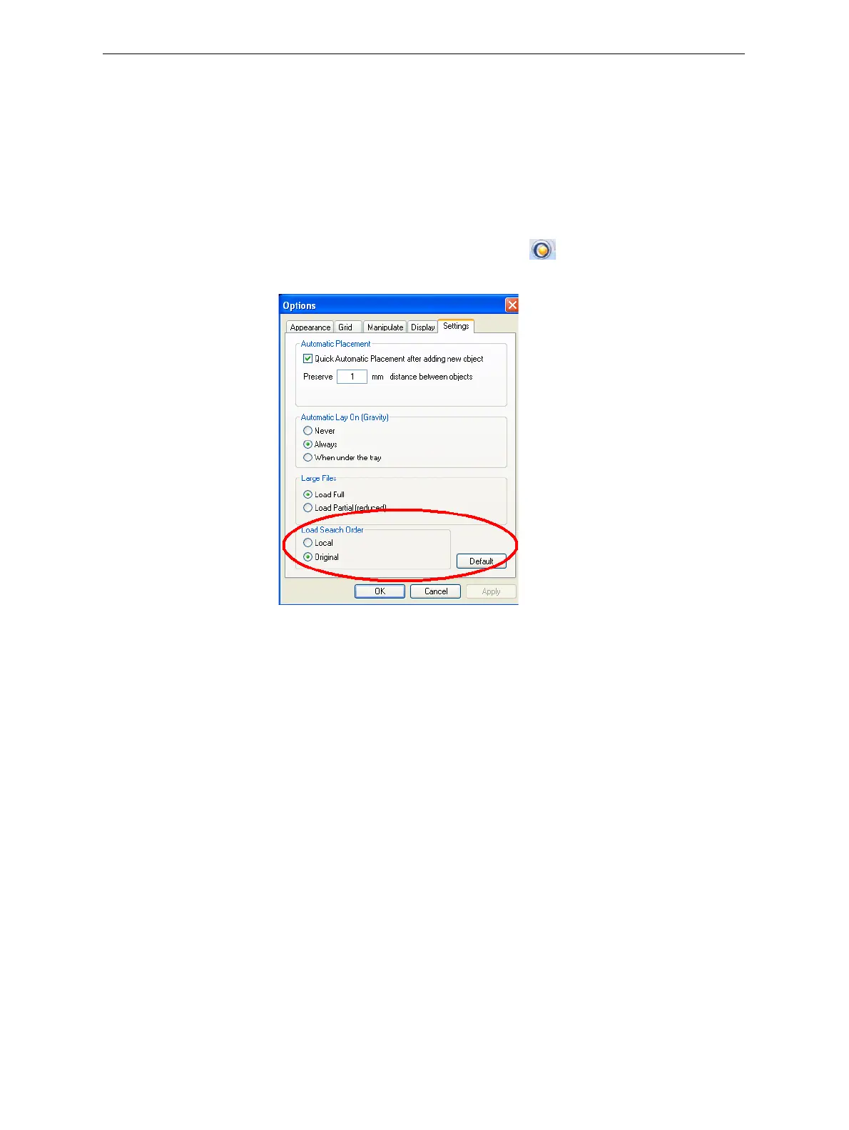 Figure 5-14: Options dialog box, Settings tab