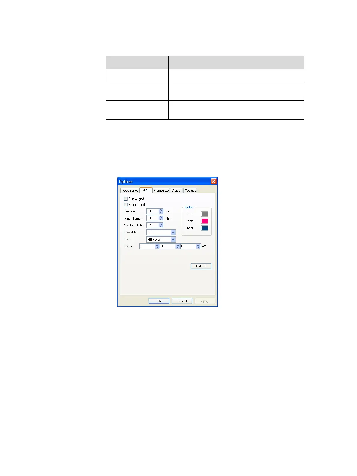 Figure 5-23: Options dialog box, Grid tab