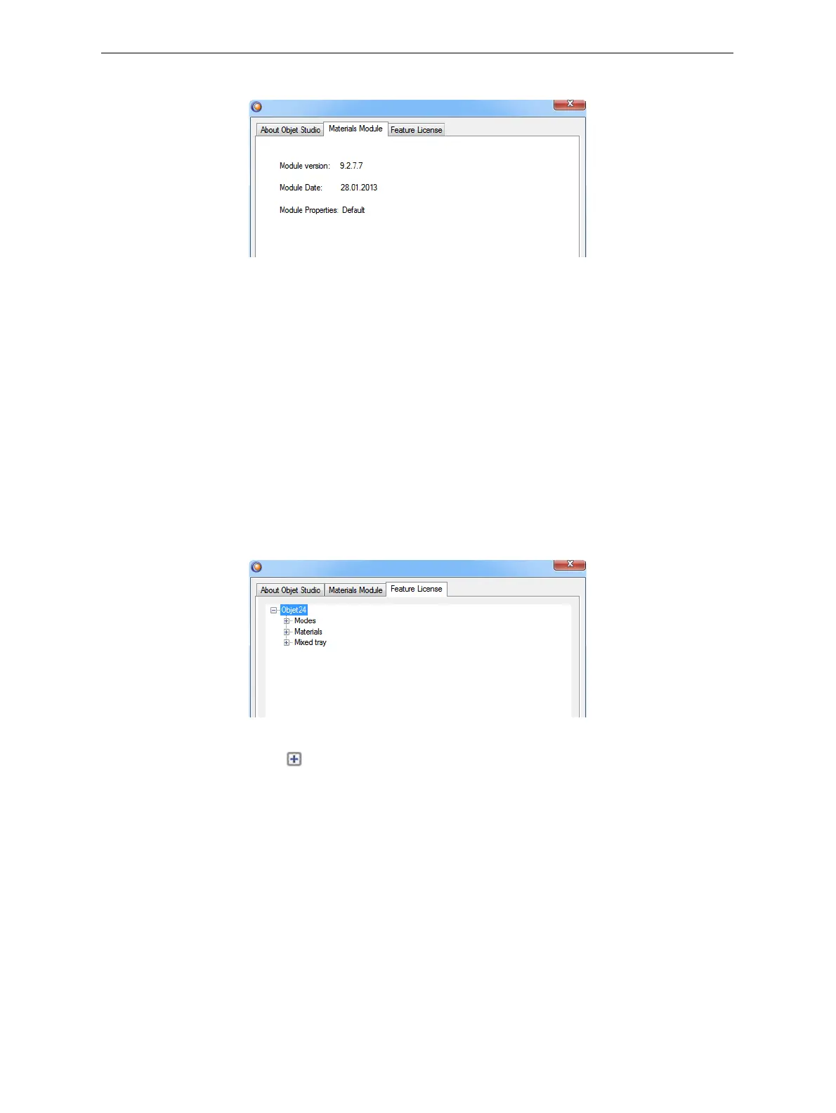 TheFeatureLicensetabshowstheObjetStudiofeaturesavailablewithyour
