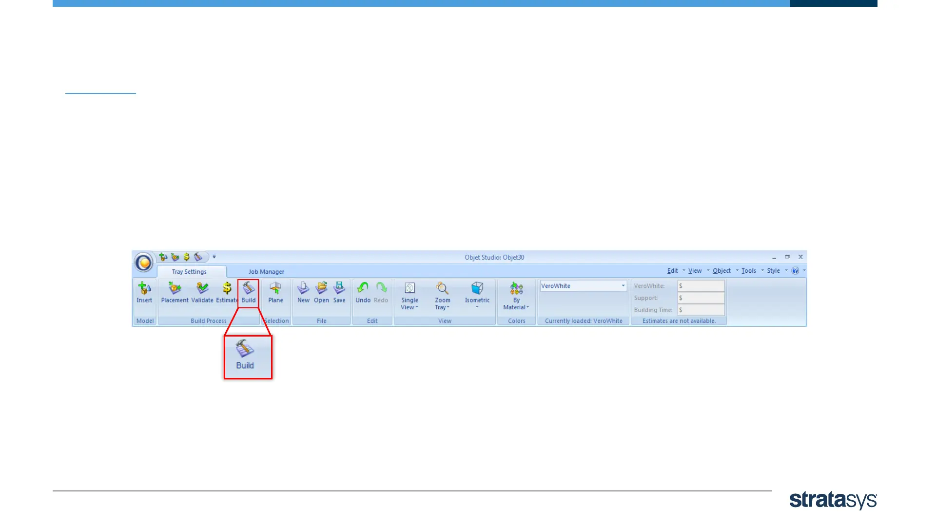 • To send the tray to the print queue click ‘Build’: