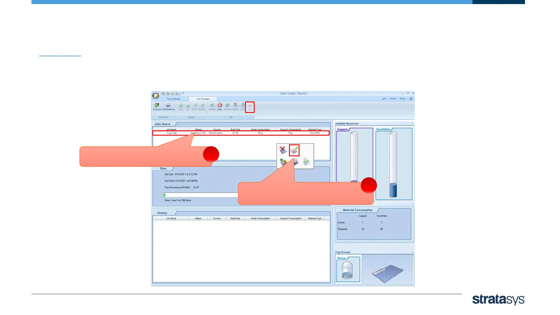 You can open a stopped or waiting job in the Jobs Queue to make changes before printing.