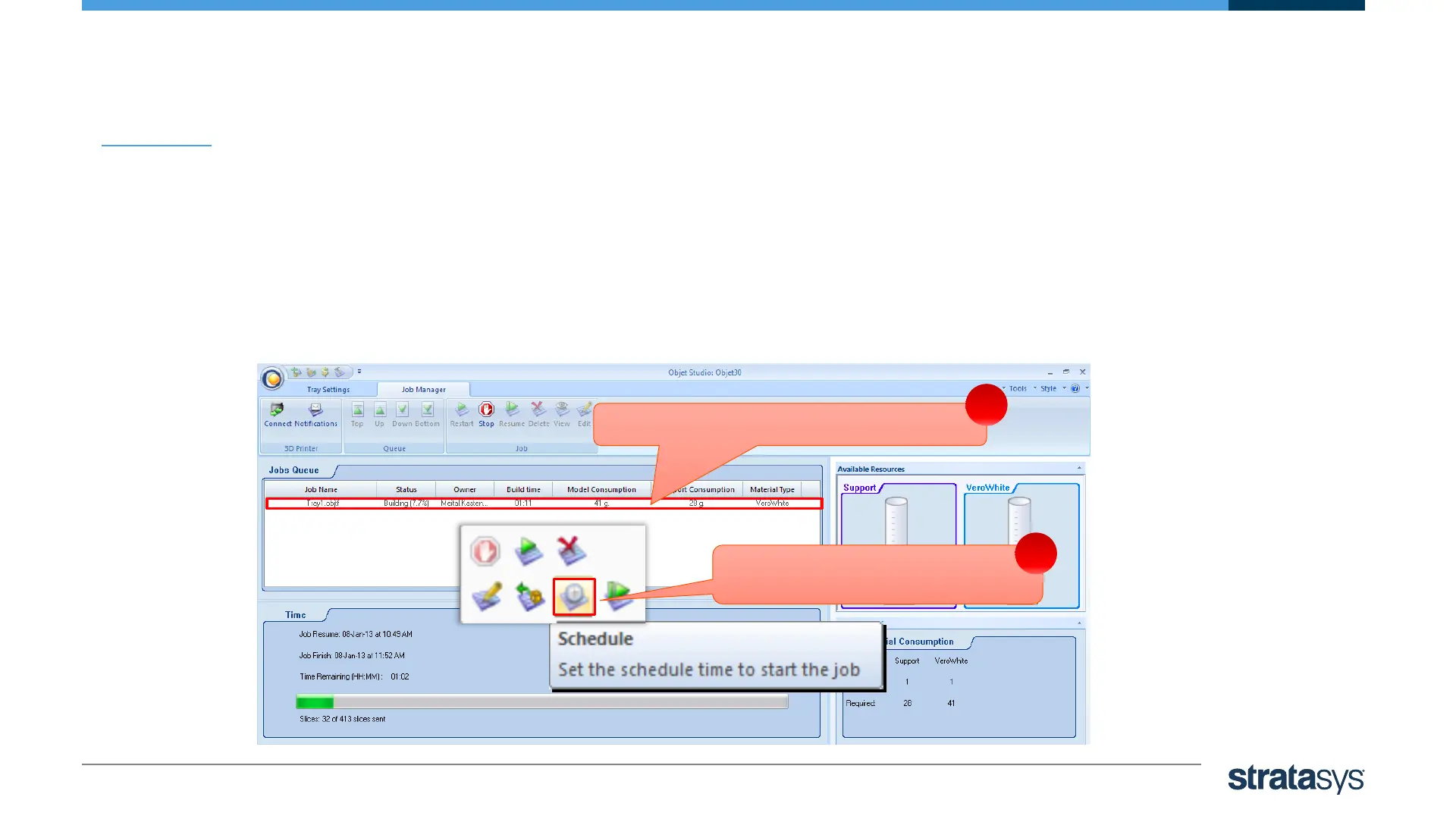 Note: if the job you wish to schedule is the only one in the Jobs Queue, it must be stopped first before scheduling
