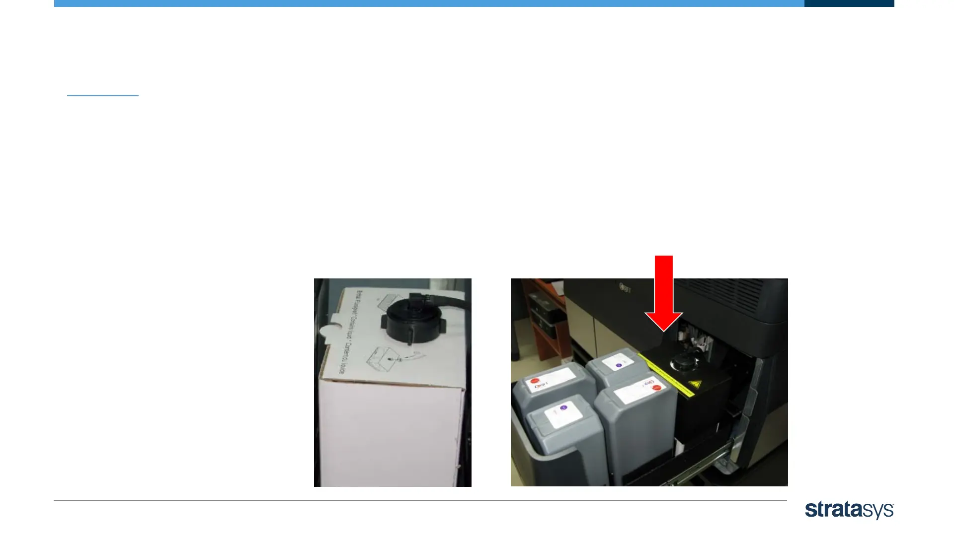 What: the waste container contains partially cured polymeric material produced during the printer operation. This