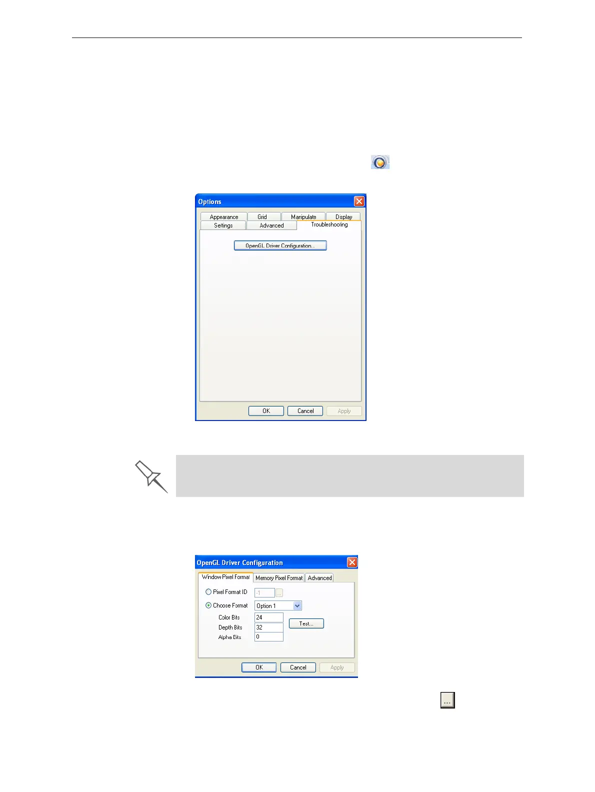 To access the OpenGL Driver Configuration dialog box: