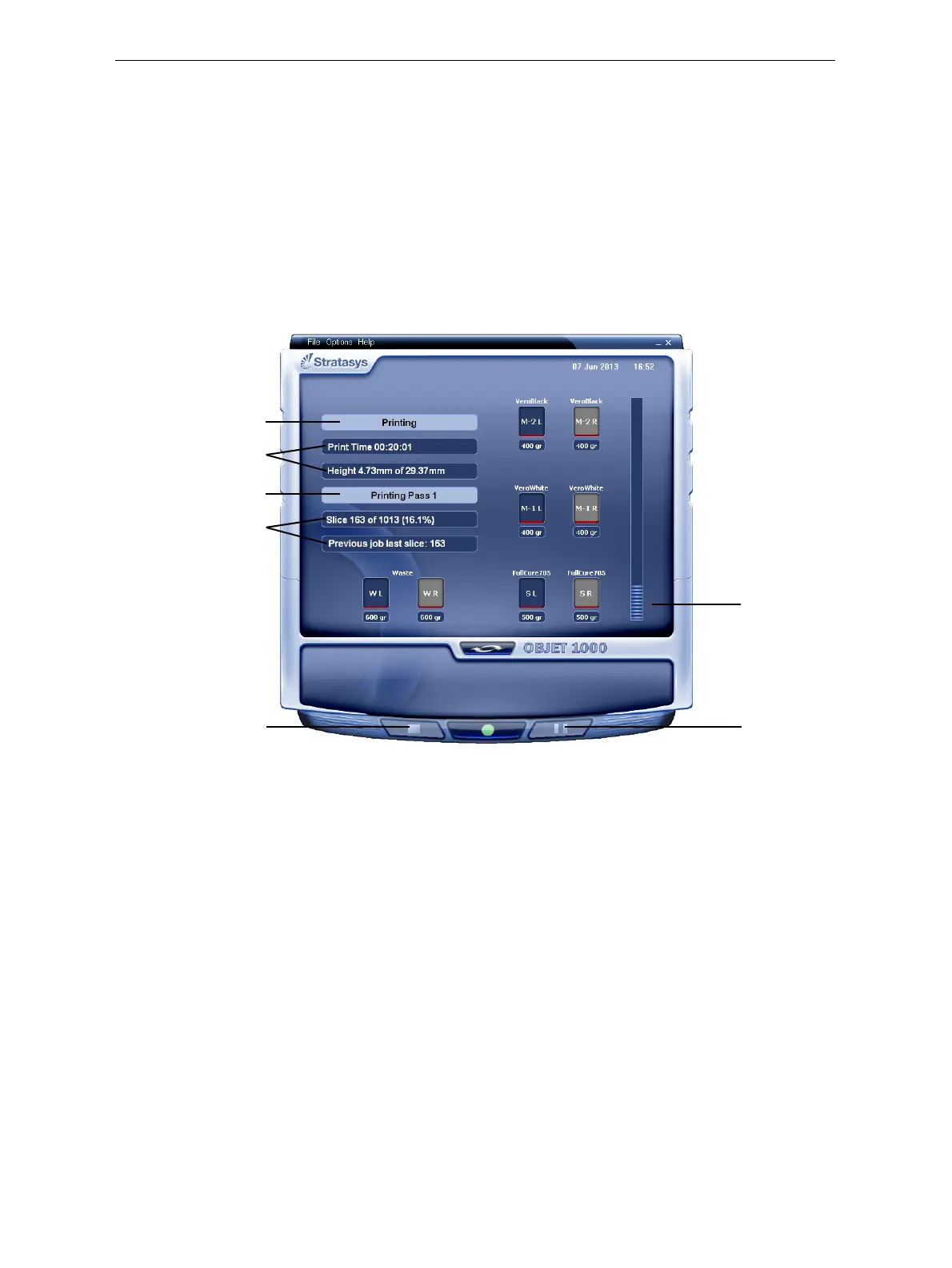 TheprinterinterfacescreenchangeswhenyousendaprintjobfromObjet