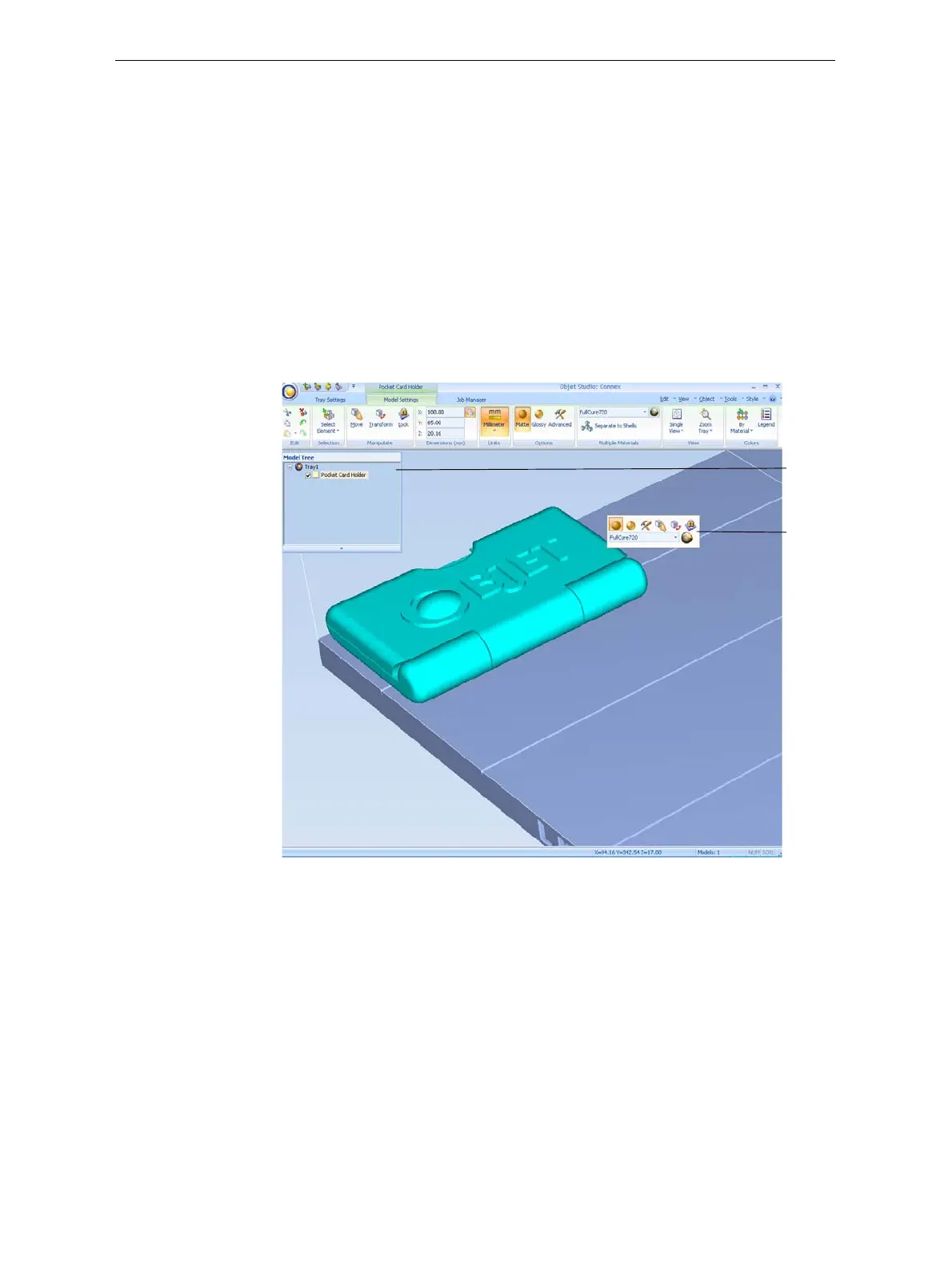 ObjetStudioplacestheobjectonthebuildtray,andinthemodeltree.