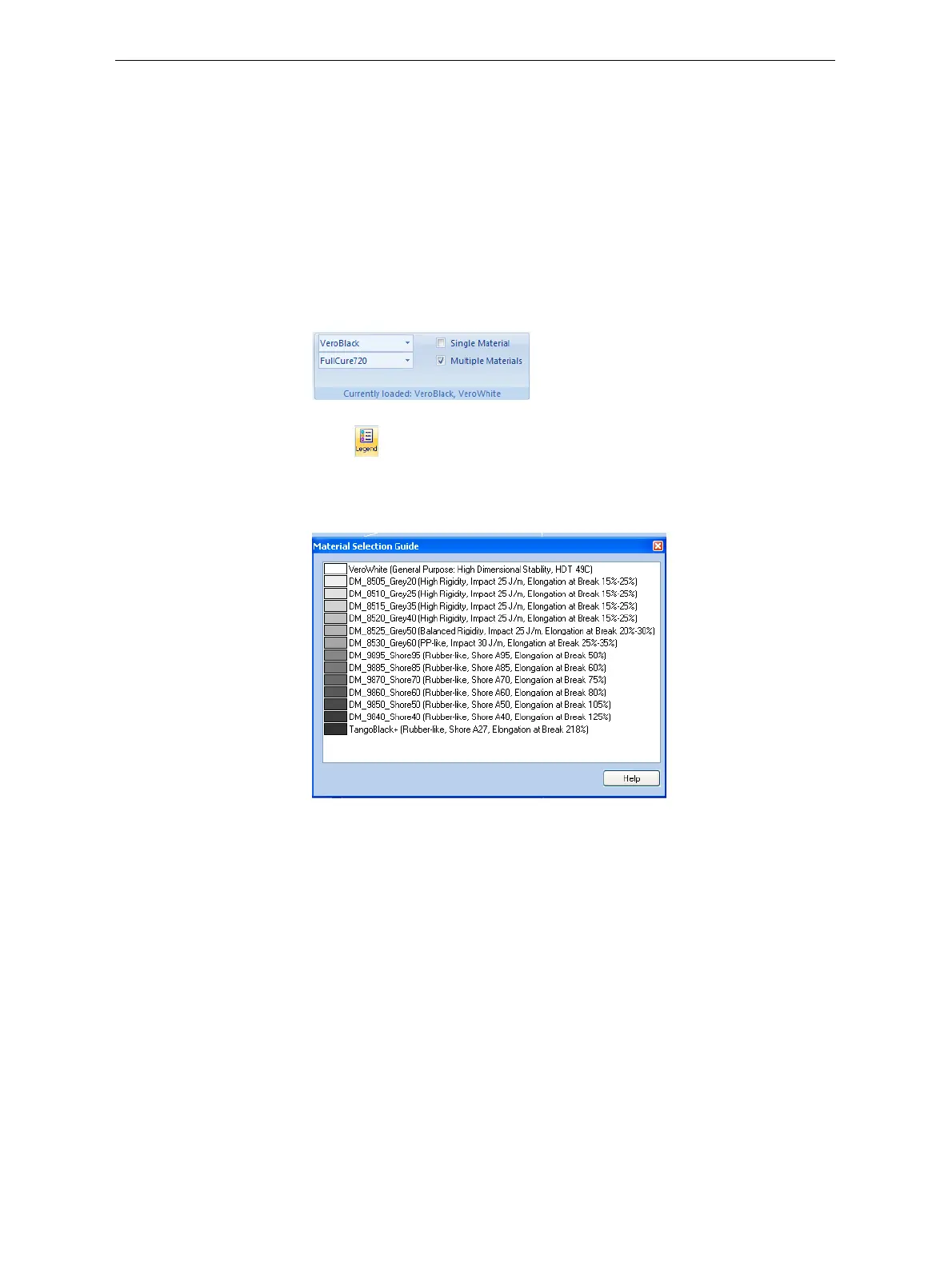Figure 5-27: Material Selection Guide, showing the digital materials