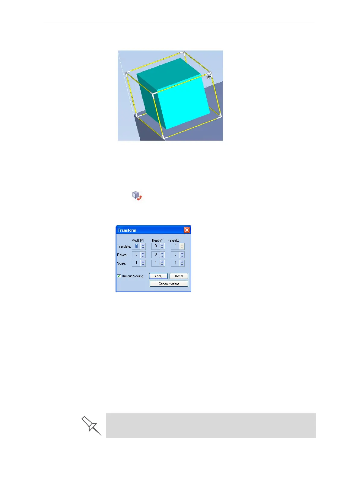 After closing the Transform dialog box, clicking Undo (on the Model Settings