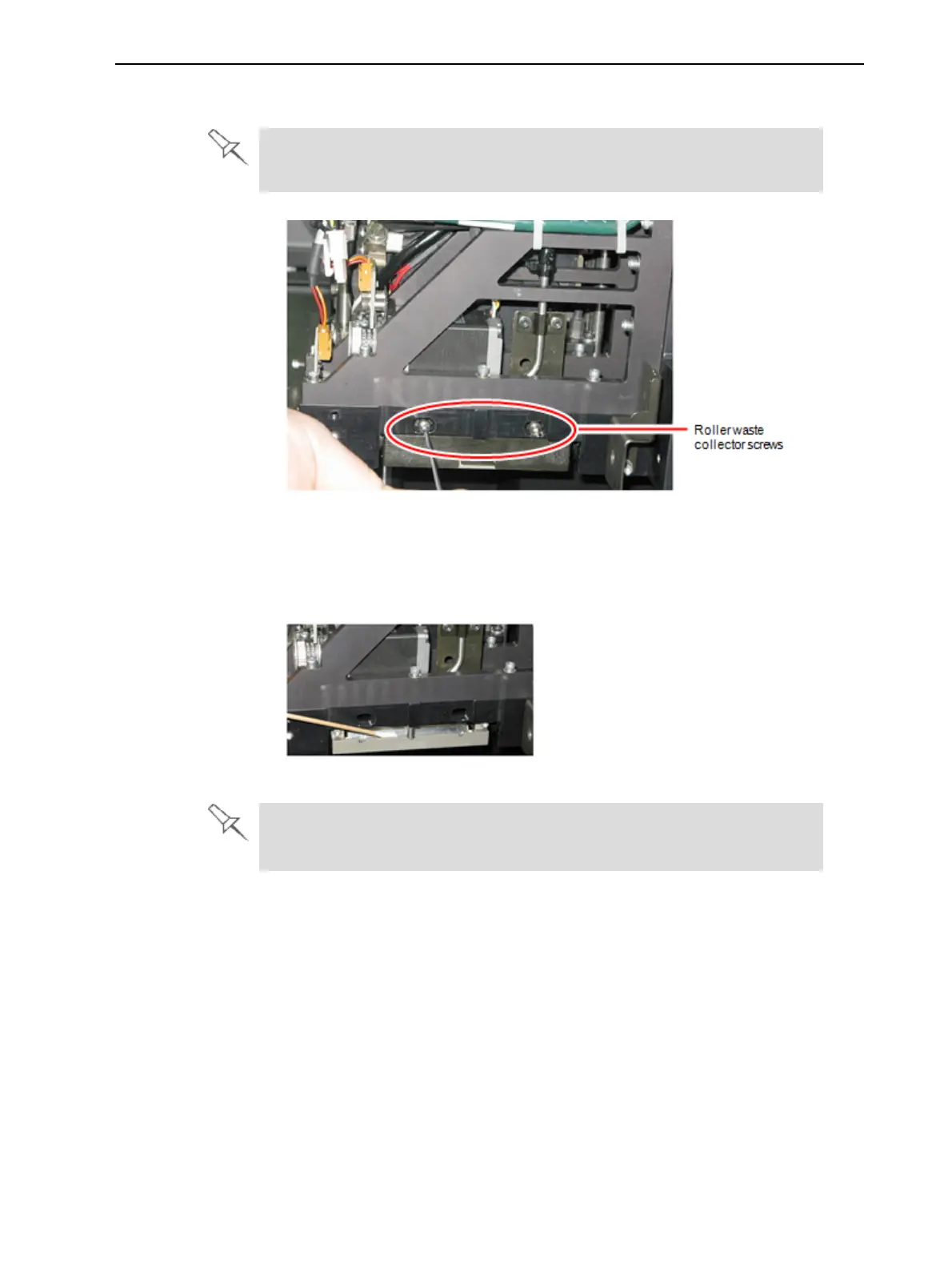 6. Removethetwoscrewssecuringthecoveringoftherollerwastecollector