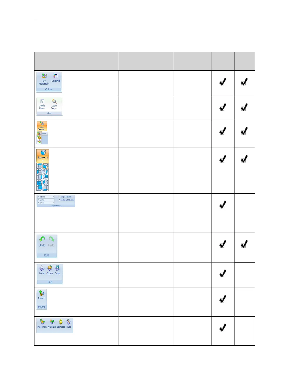 ThefollowingtableliststheTray SettingsandModel Settingsribbon