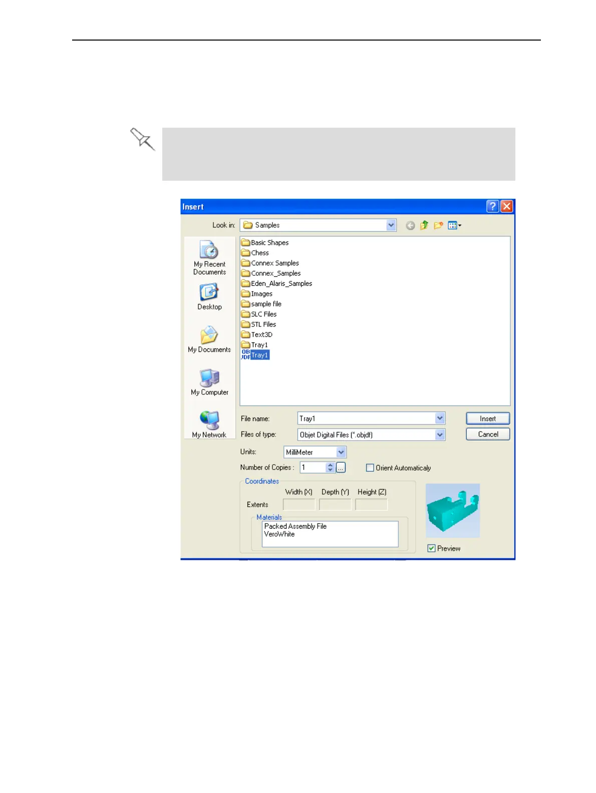 Beforeplacingobjdffilesonthebuildtray,ObjetStudiomustextractthe