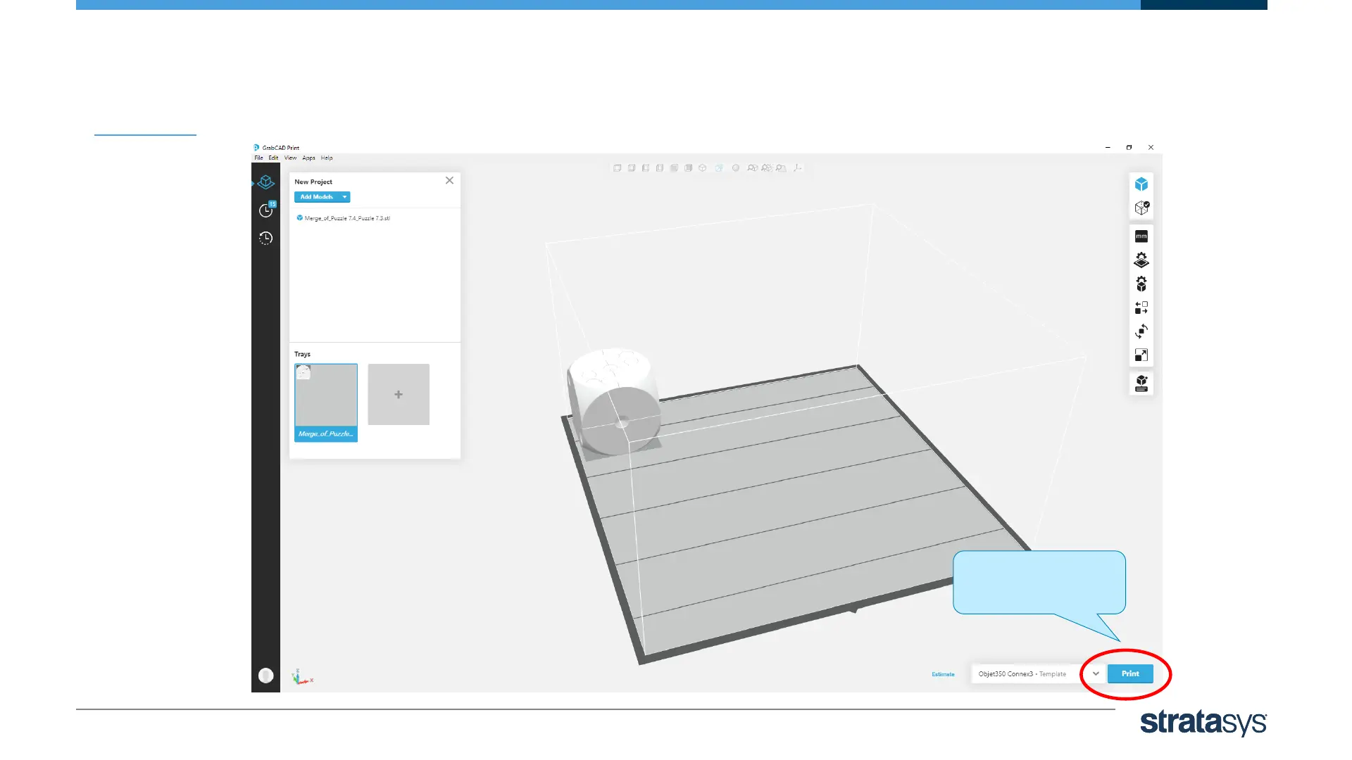 Stratasys Objet30 - Printing the Tray