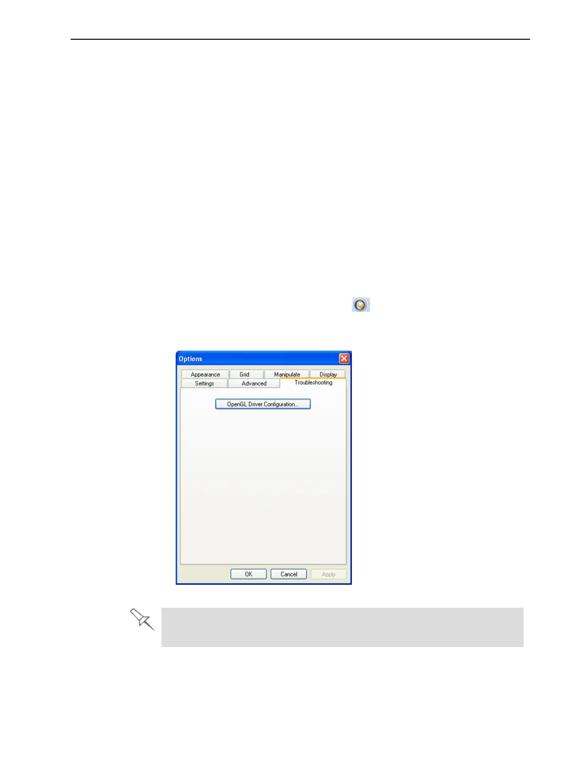 displays objects, you can use the OpenGL Driver Configuration tool to check