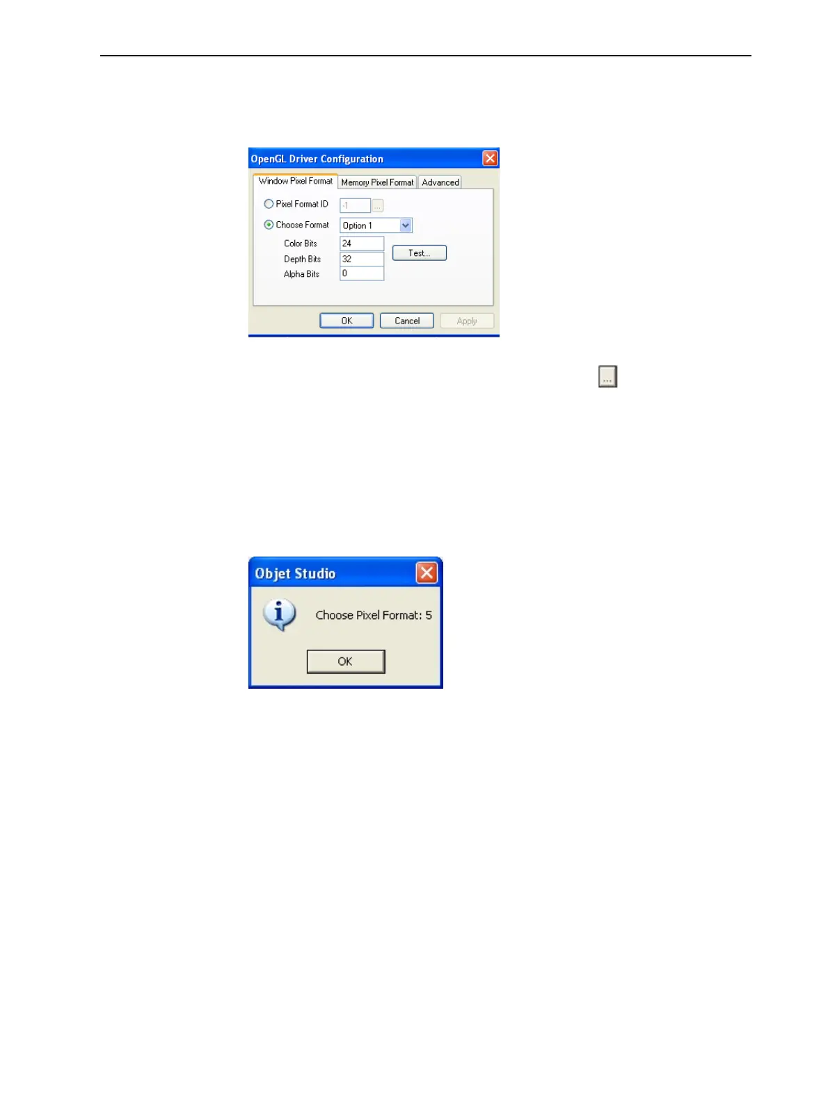 Objet Studio returns the recommended pixel format ID.