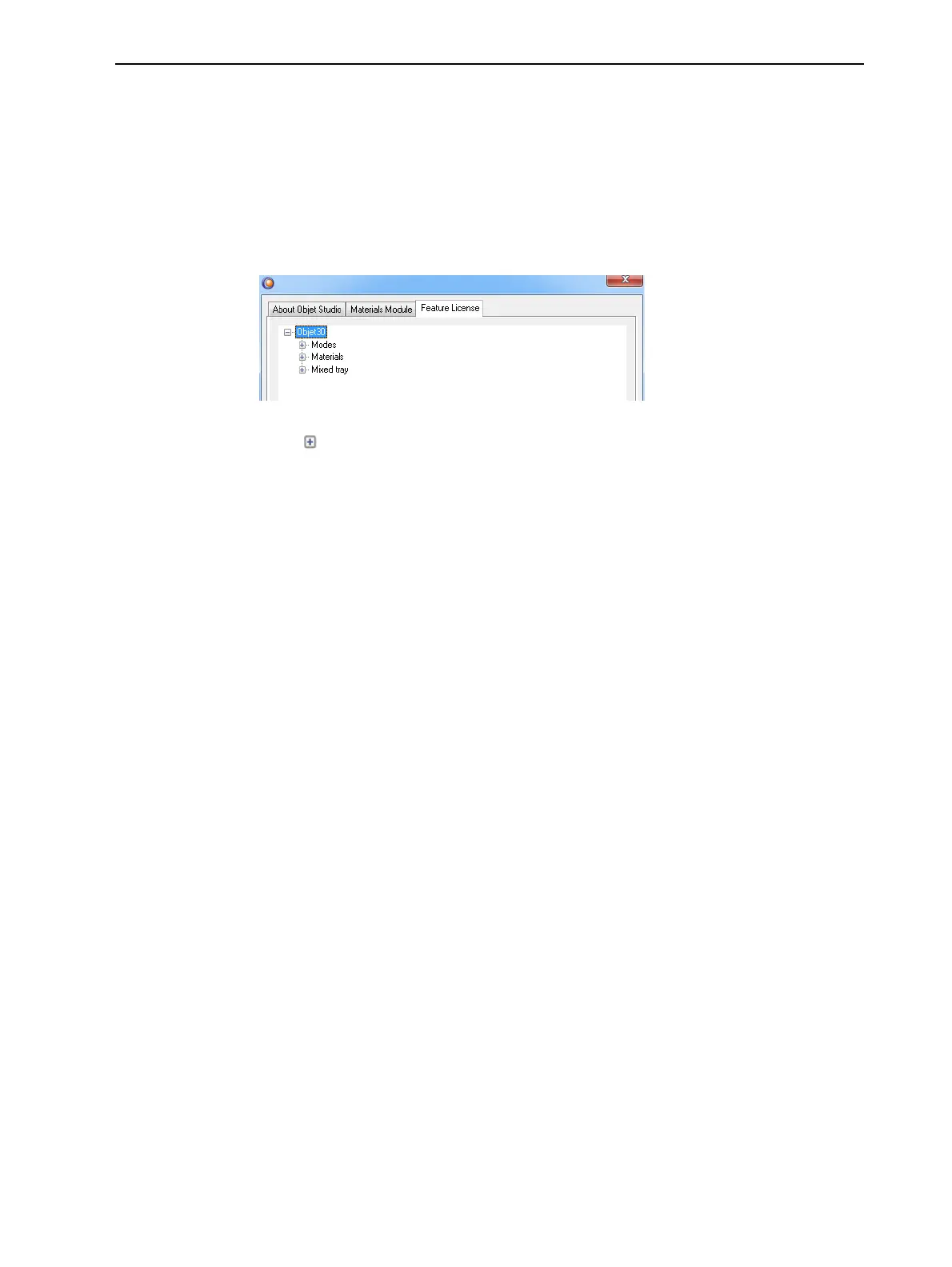 The Feature License tab shows the Objet Studio features available with your