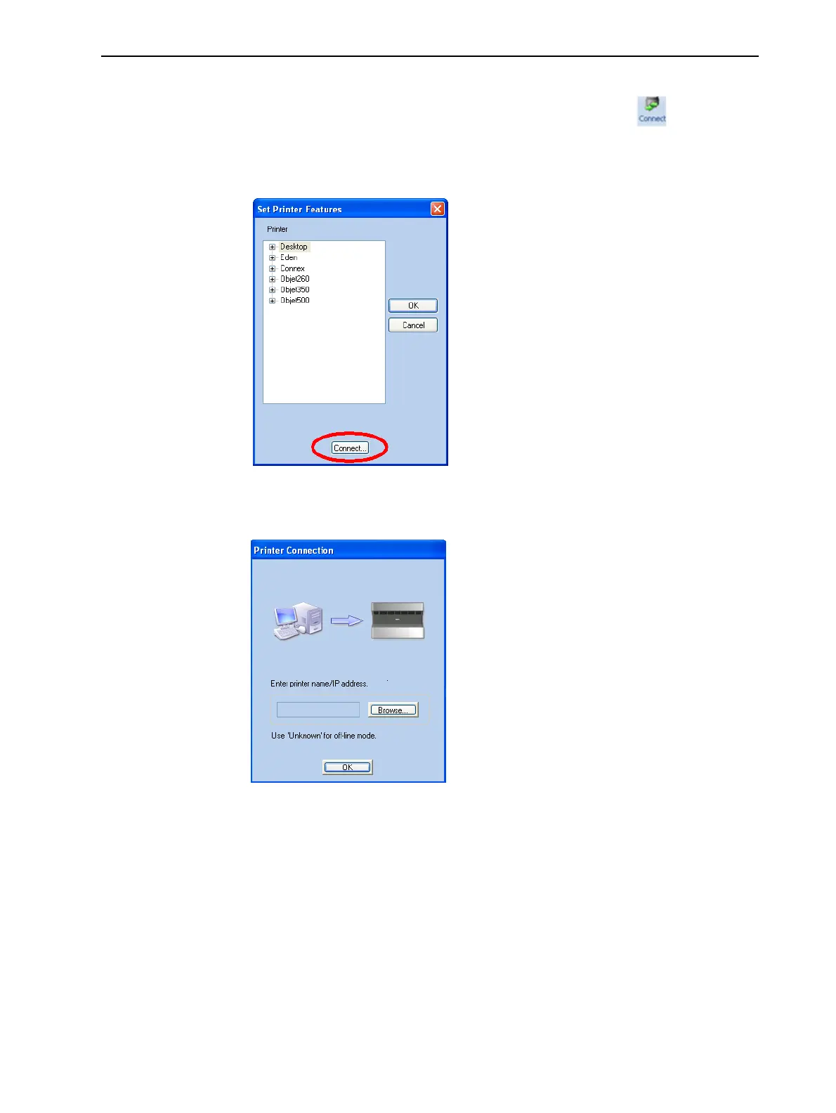 2. In the Set Printer Features dialog box, click Connect (see Figure 5-81 on
