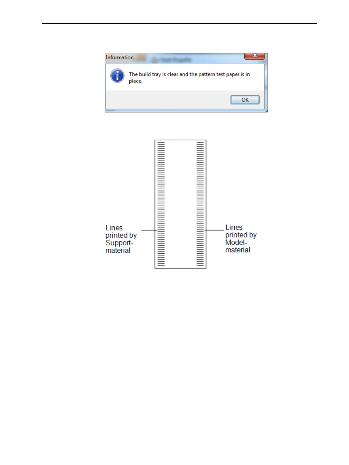 The printer prints a series of lines on the test paper (see next figure).