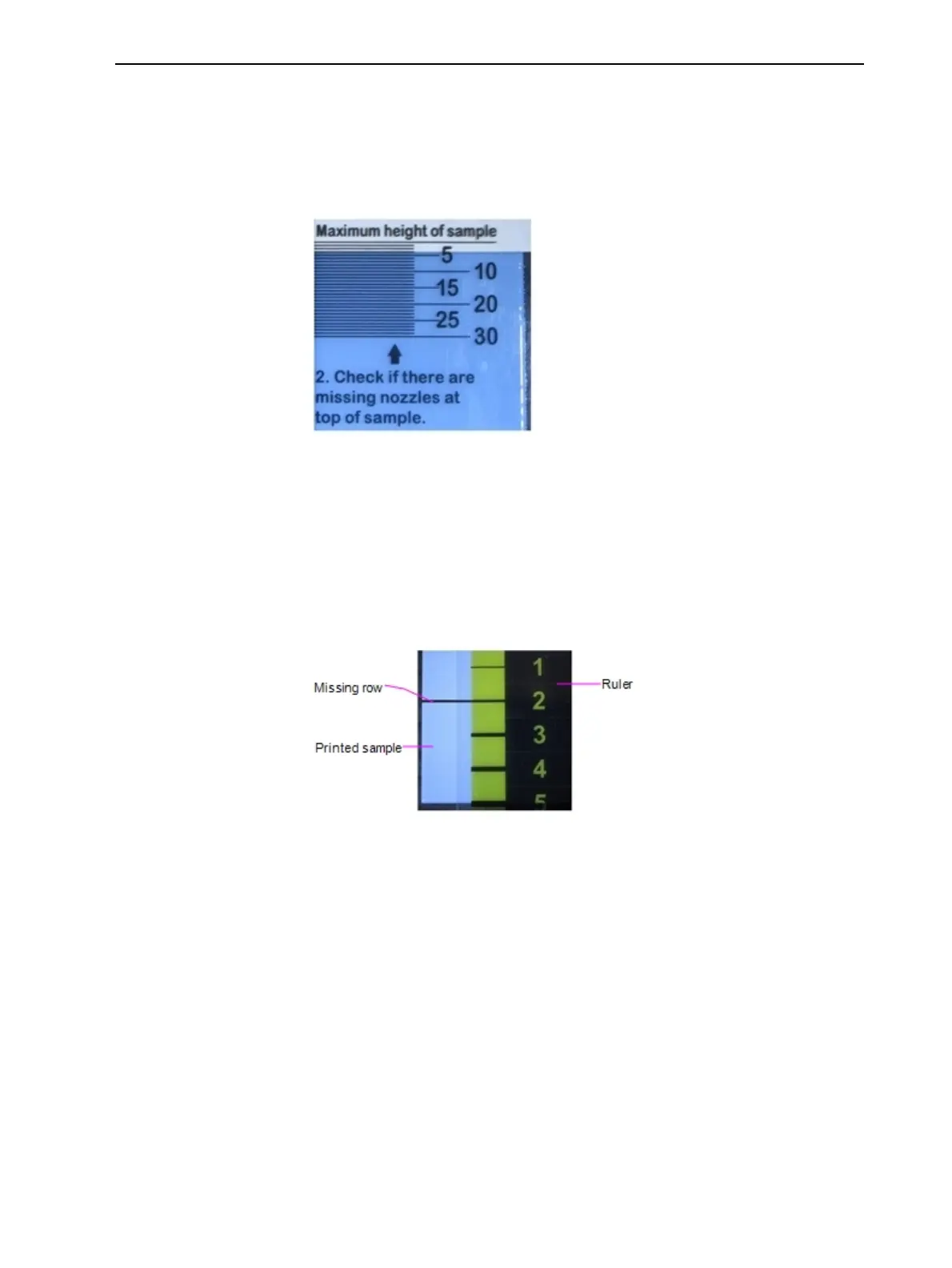 ruler next to the line indicates the number of missing rows/nozzles.