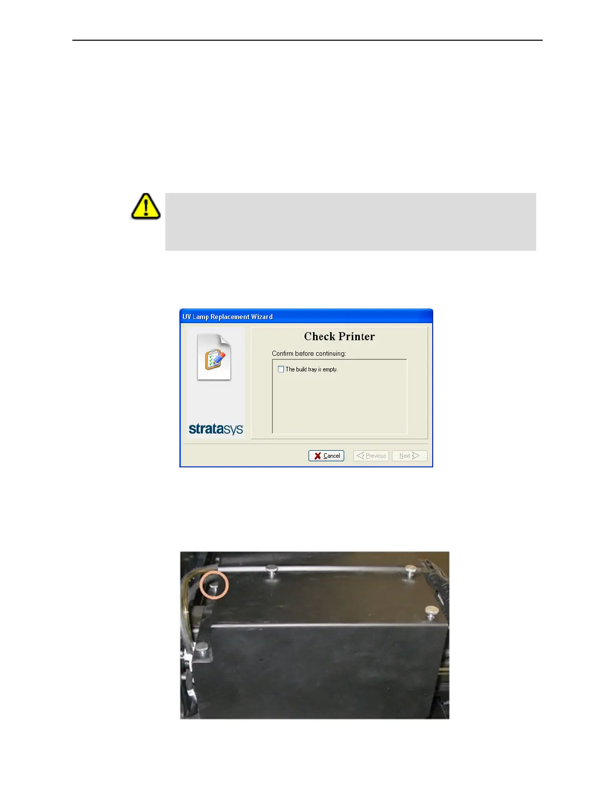2. Make sure that the build tray is empty, and confirm this in the wizard
